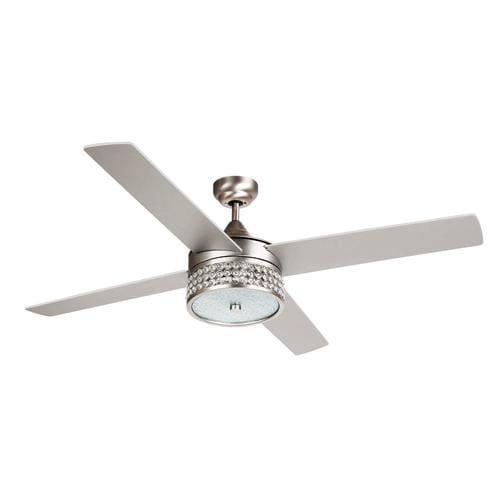 Chandelier ceiling fan- it is a combination of a unique modern crystal chandelier and a ceiling fan, ideal for a large room Reversible 4 chrome blades, manual setting reverse airflow feature allows you to change the fan's direction setting seasonally, so cool air is pushed down or warm air is distributed evenly 3 Speed setting make it easy to maintain the ideal comfort level Remote control included- this high-end remote control allows you to control the light and the fan speed separately and from anywhere in the room 52-In fan provides airflow up to 5997-CFM, making it ideal for large room Ceiling fan with lights, 40 watts LED bulbs (not included) to provide ample illumination and trim your electric bill 3-In and 10-In L down rod included (can also be installed as max 15 degrees angle mount) Offering a limited lifetime motor warranty on all ceiling fans; with a 1-year warranty on all parts