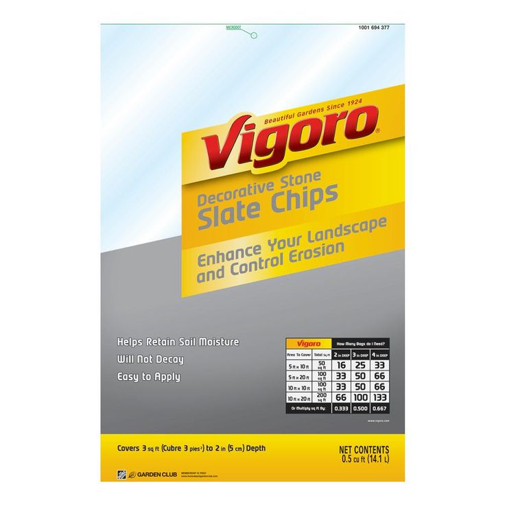 0.5 cu. ft. Slate Chips are beautiful, dark gray slate chips range in size from 1 in. to 2 in. across. These thin disks lay flat and add a beautiful texture and color to landscapes and driveways. This size slate chip works well for driveways and parking areas.