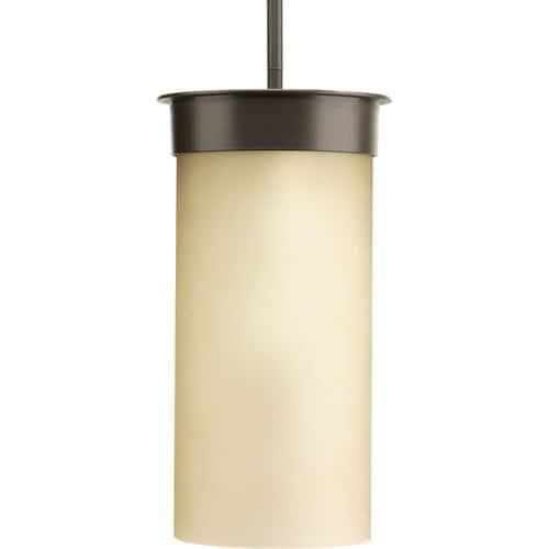 This Hawthorne hanging lantern from Progress Lighting brings Prairie-inspired style with an Antique Bronze finish and etched umber seeded glass. The compact 7.5-in by 14.88-in fixture is damp-rated and hardwired, ideal for porches, foyers, and covered outdoor spaces.