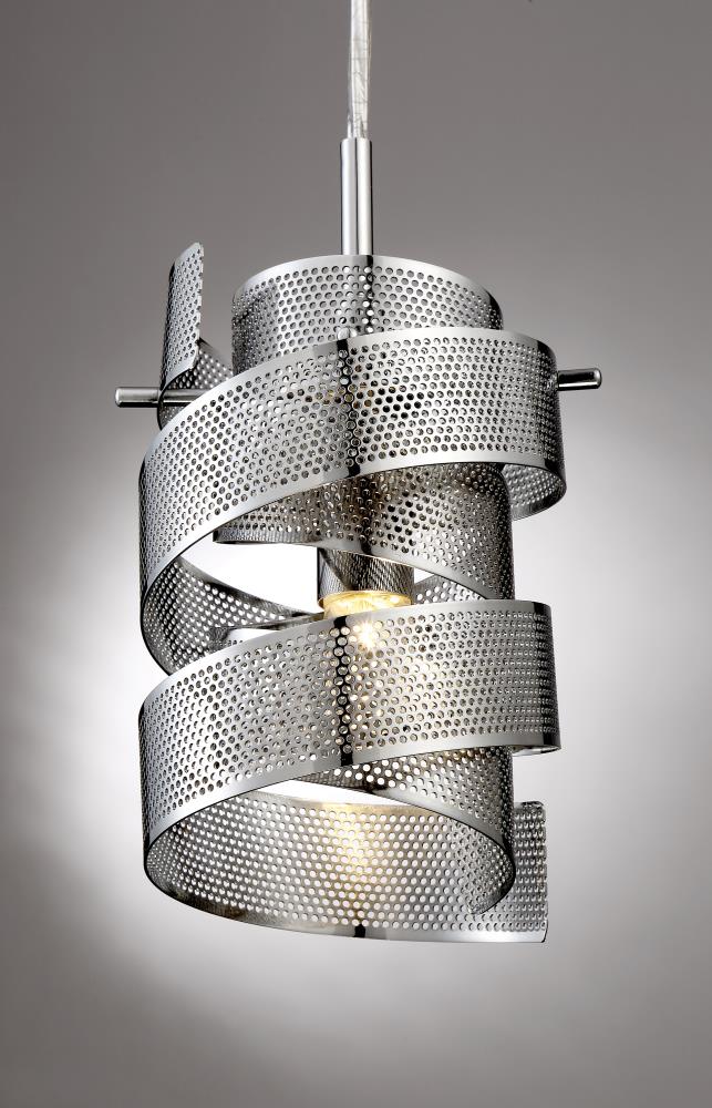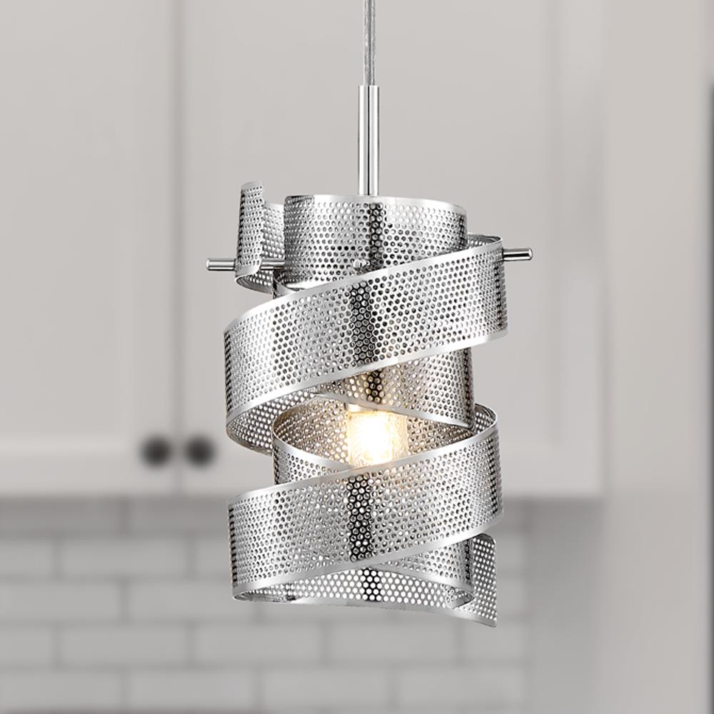 • Artful Perforated Design: Swirling metal ribbon shade in polished chrome adds dimension and sparkle