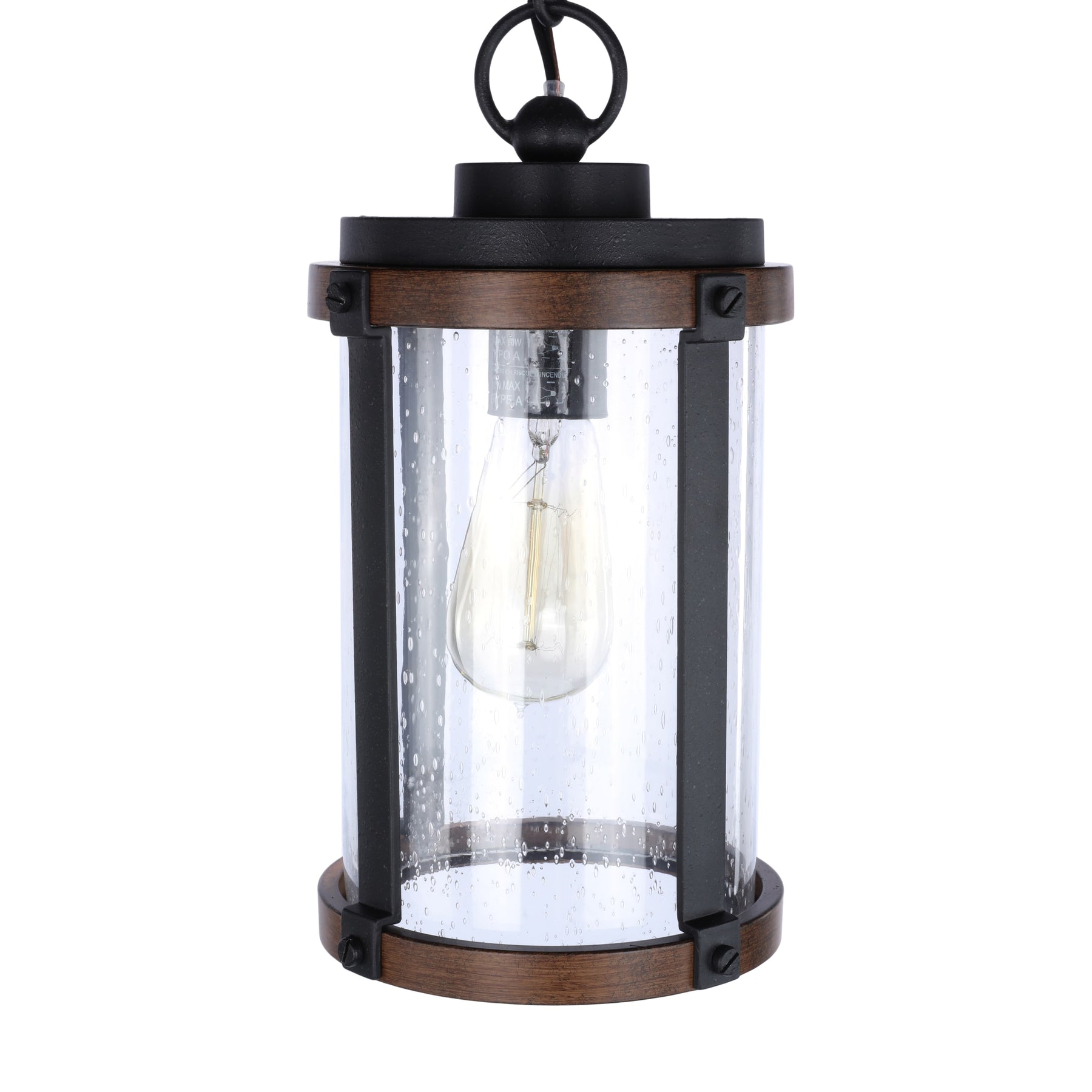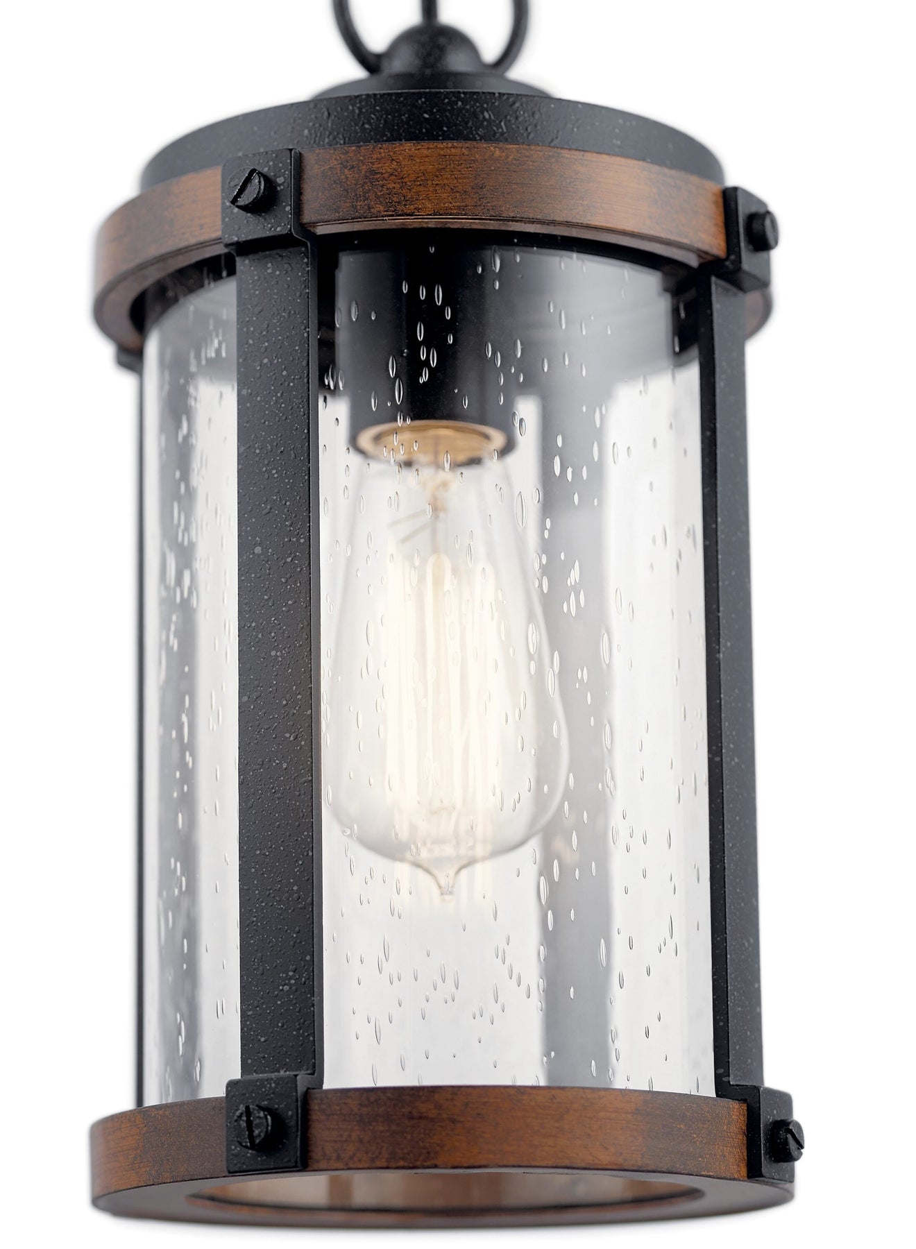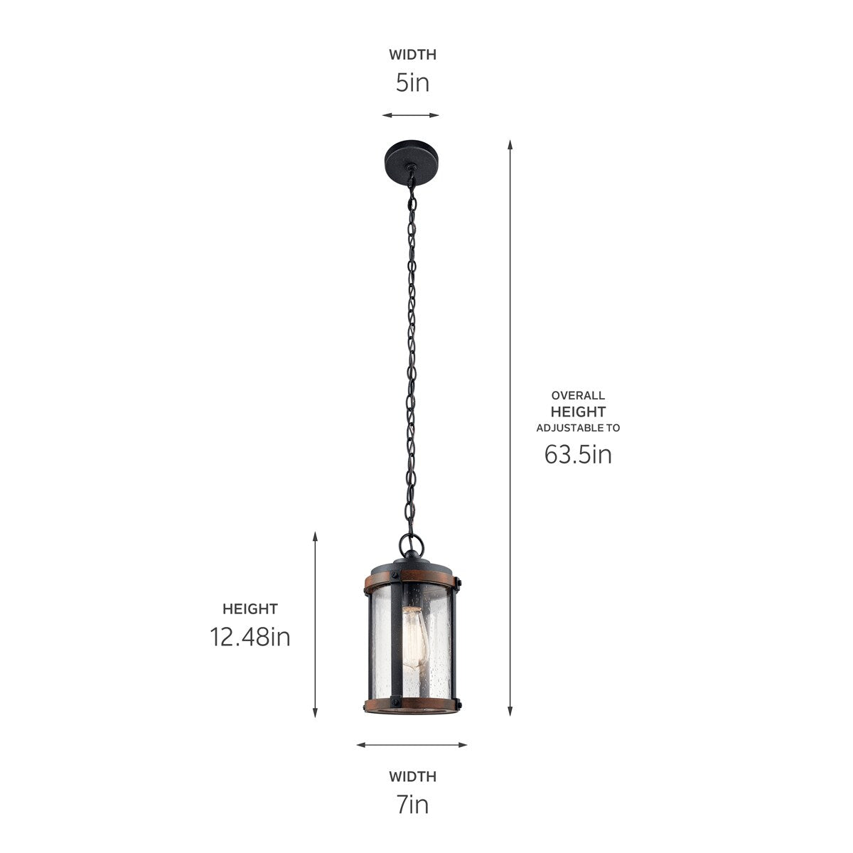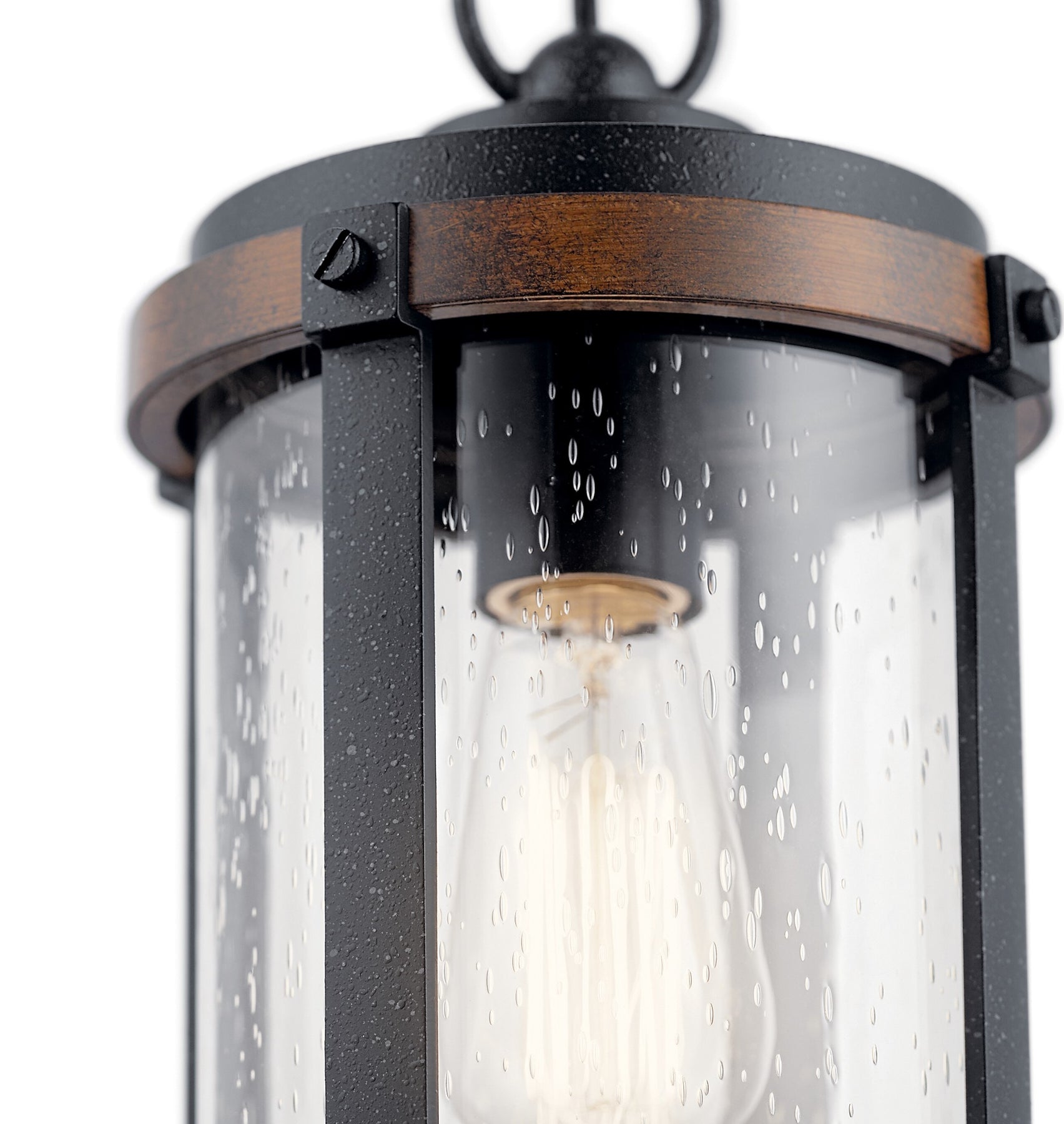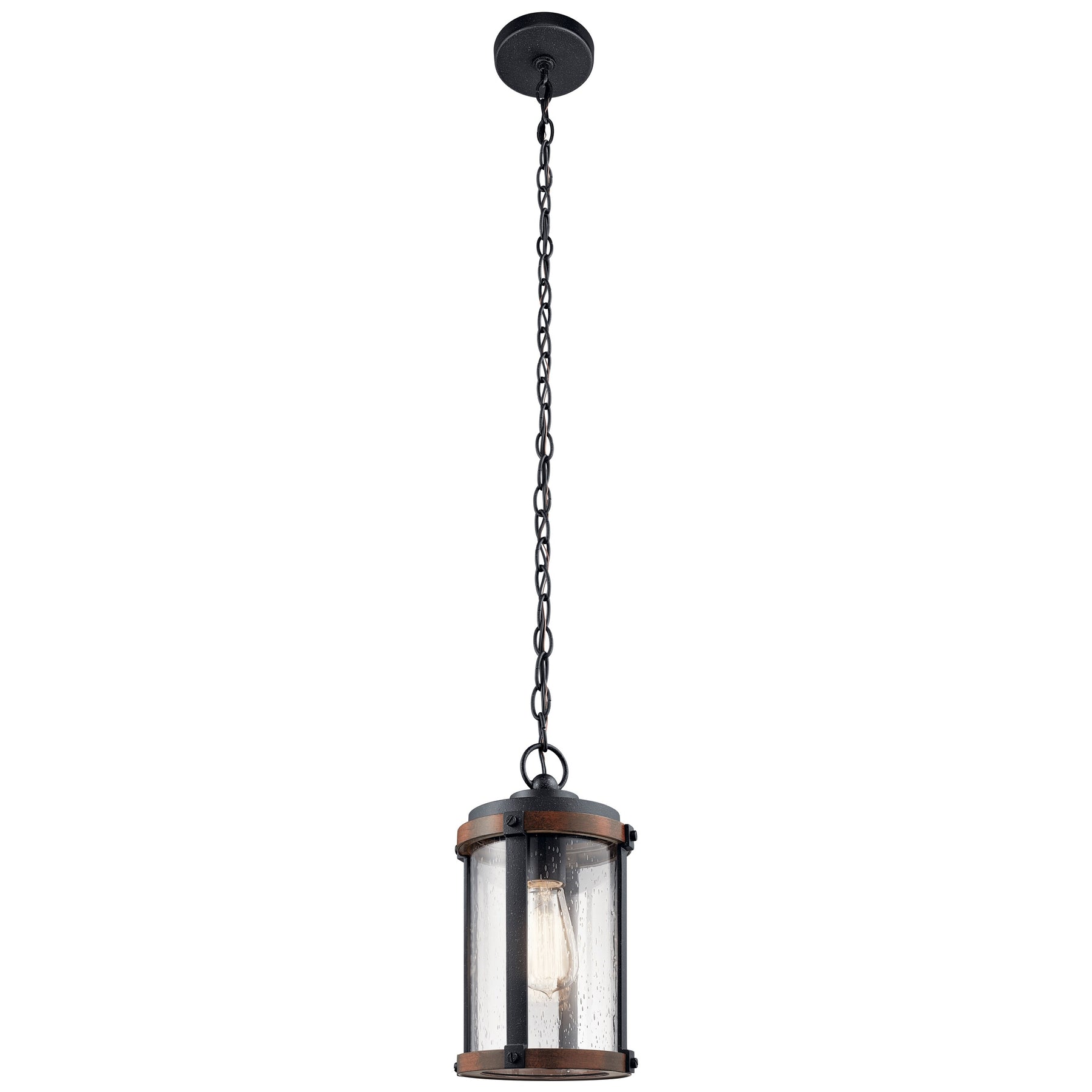 Kichler Barrington Distressed Black & Aged Wood Seeded Glass Cylinder Outdoor Pendant Light, 7-in W x 12.48-in H
