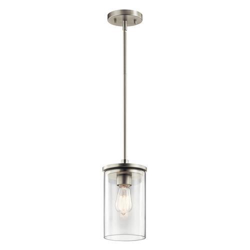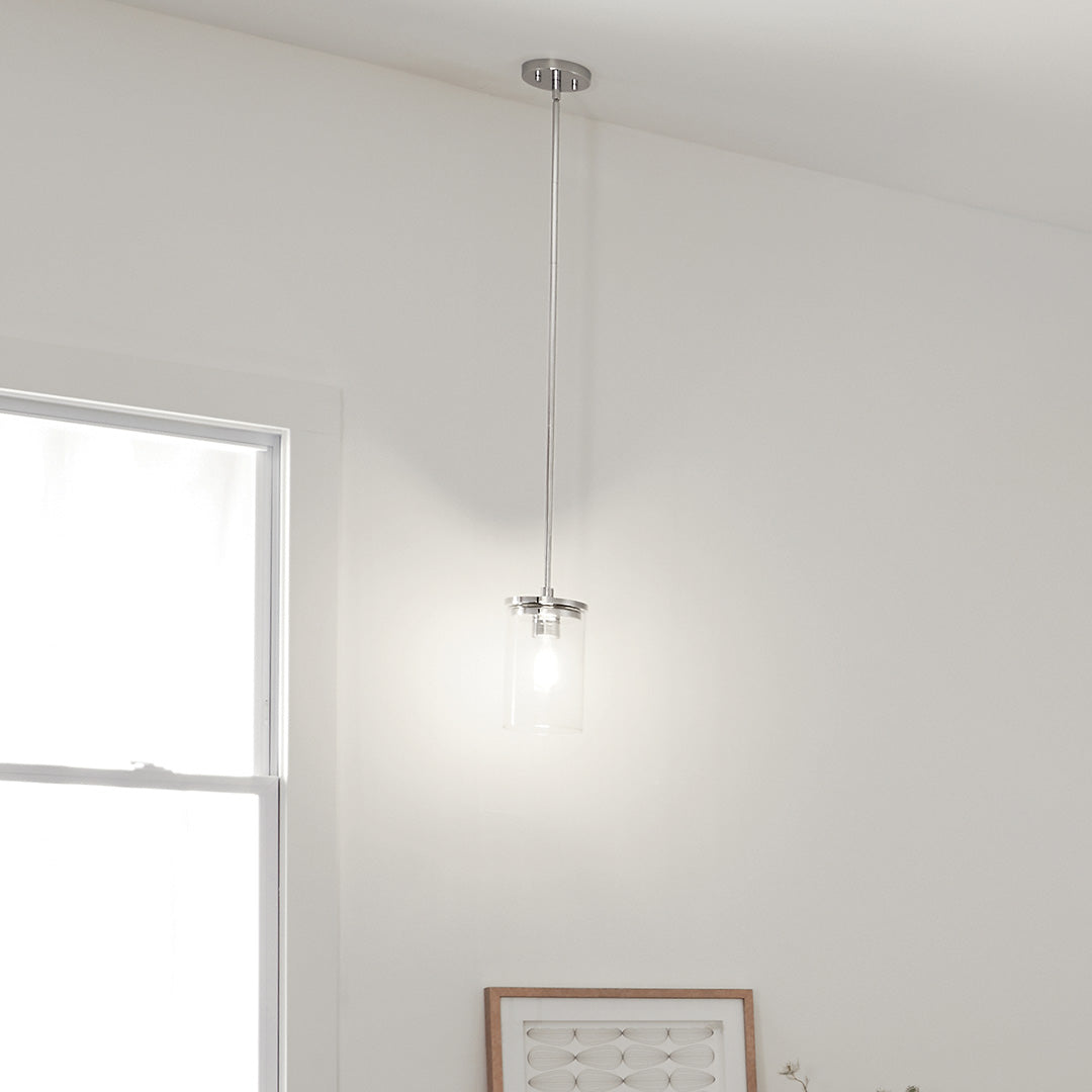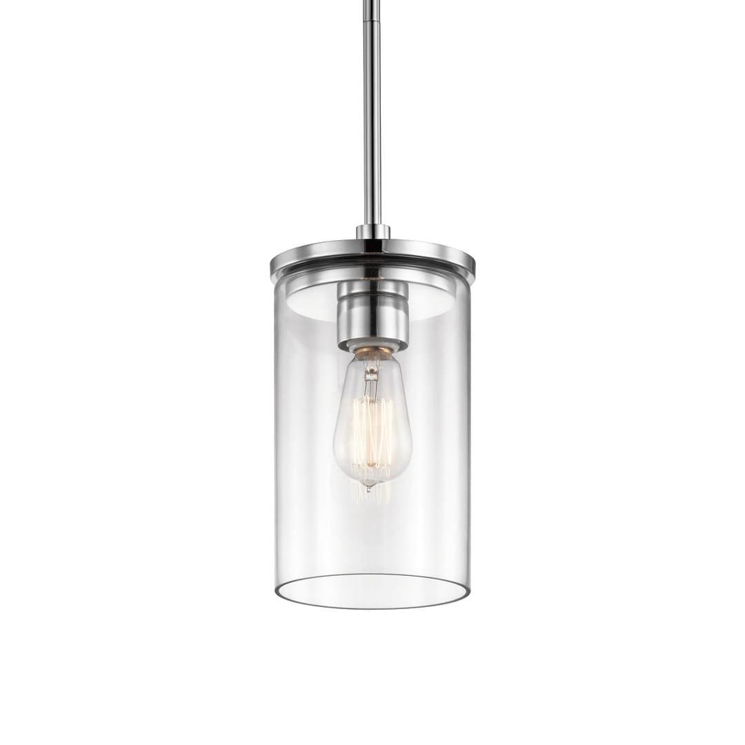 Kichler Crosby Chrome Clear Glass Cylinder Mini Pendant Light, 10.75-in H x 6-in Dia
