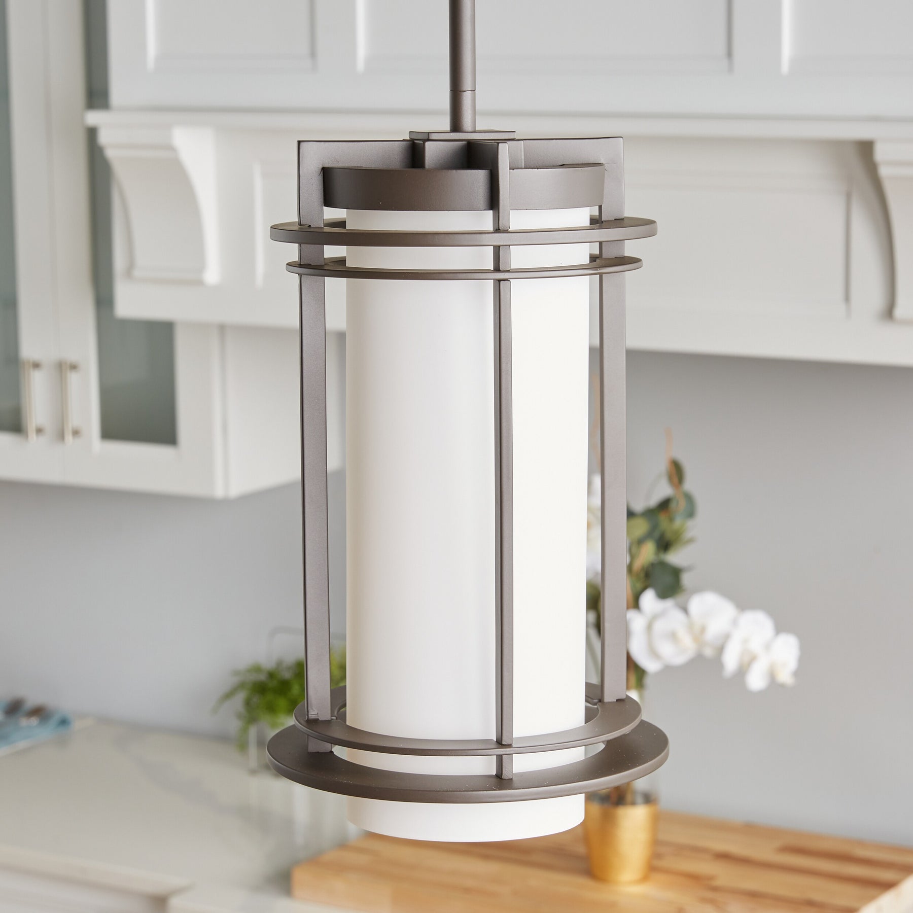 Kichler Pacific Edge Architectural Bronze Traditional Opal Glass Cylinder Pendant Light