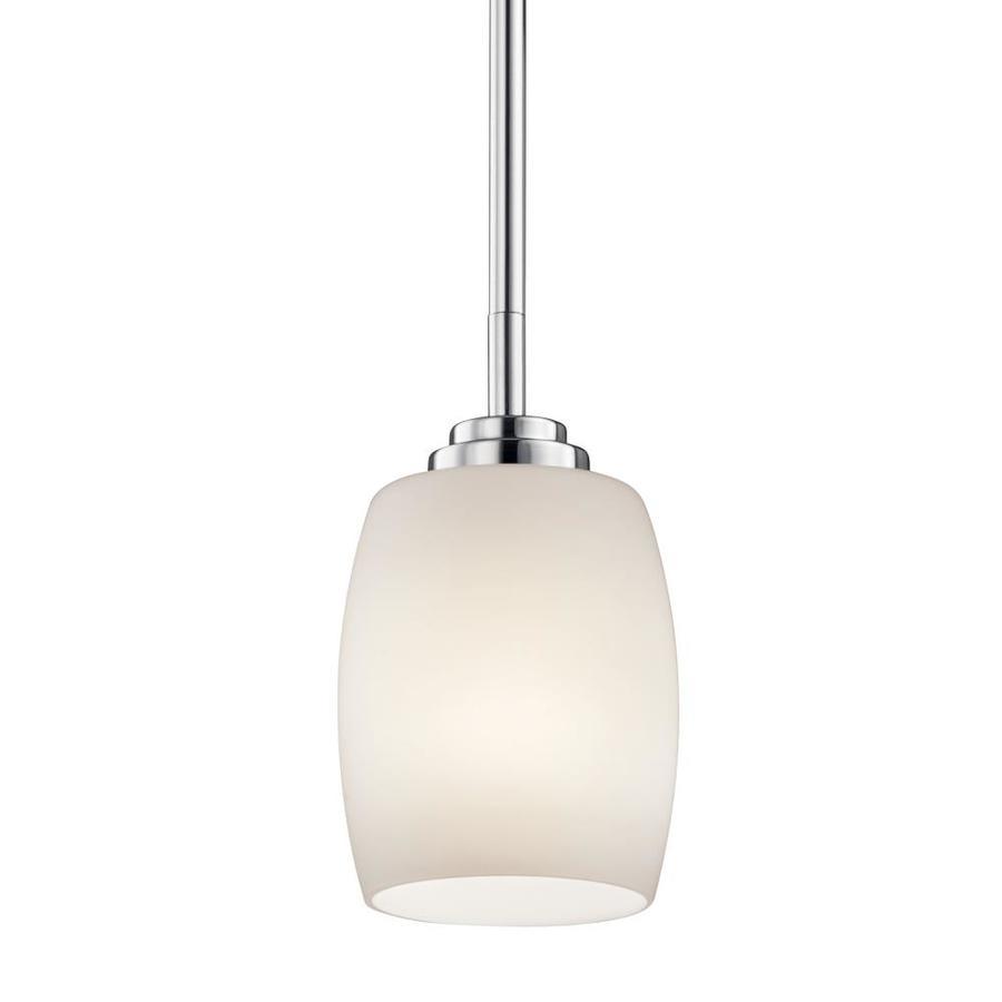A sleek mini pendant from Kichler’s Eileen collection, featuring an etched glass cylinder for soft, even illumination. Its contemporary profile suits kitchens, islands, and hallways, delivering clean style with dependable performance.