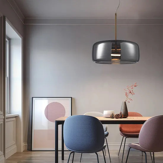 This Metal Glass LED Pendant Light transforms any dining space into a gallery of elegance with its sleek, modern silhouette. The mix of iron's strength and glass's transparency creates a luminous interplay, casting a warm, inviting glow. Pair with minimalist table settings for a chic look or hang in clusters for an artistic statement. Truly, it is an indispensable element for sophisticated living.