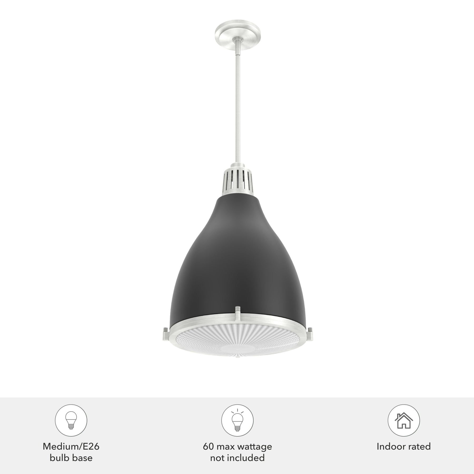 - Premium Design: Sleek matte black finish with clear holophane glass shades adds modern elegance.