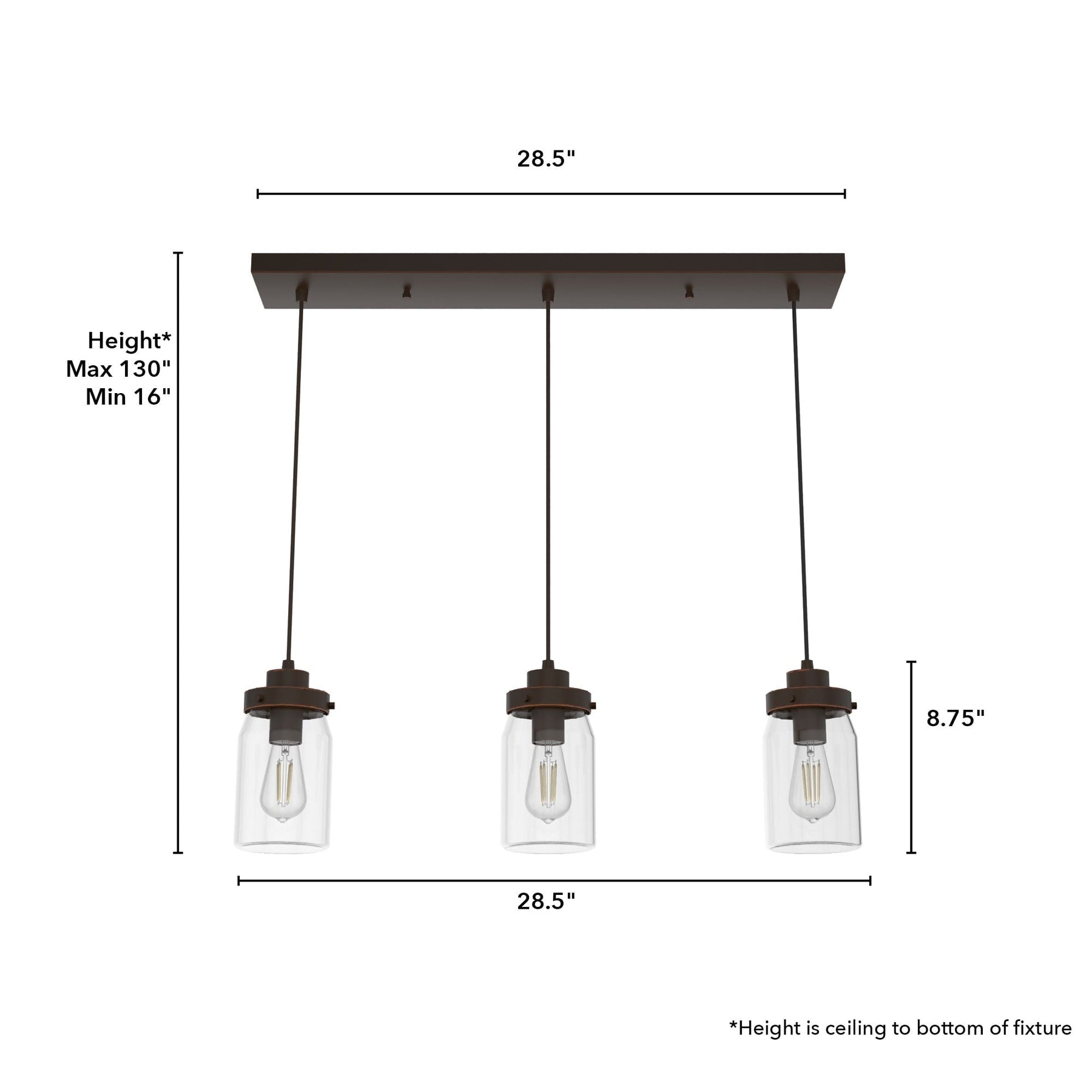 • Adjustable Length: Customize hanging length from 16 to 130 inches to suit any space.