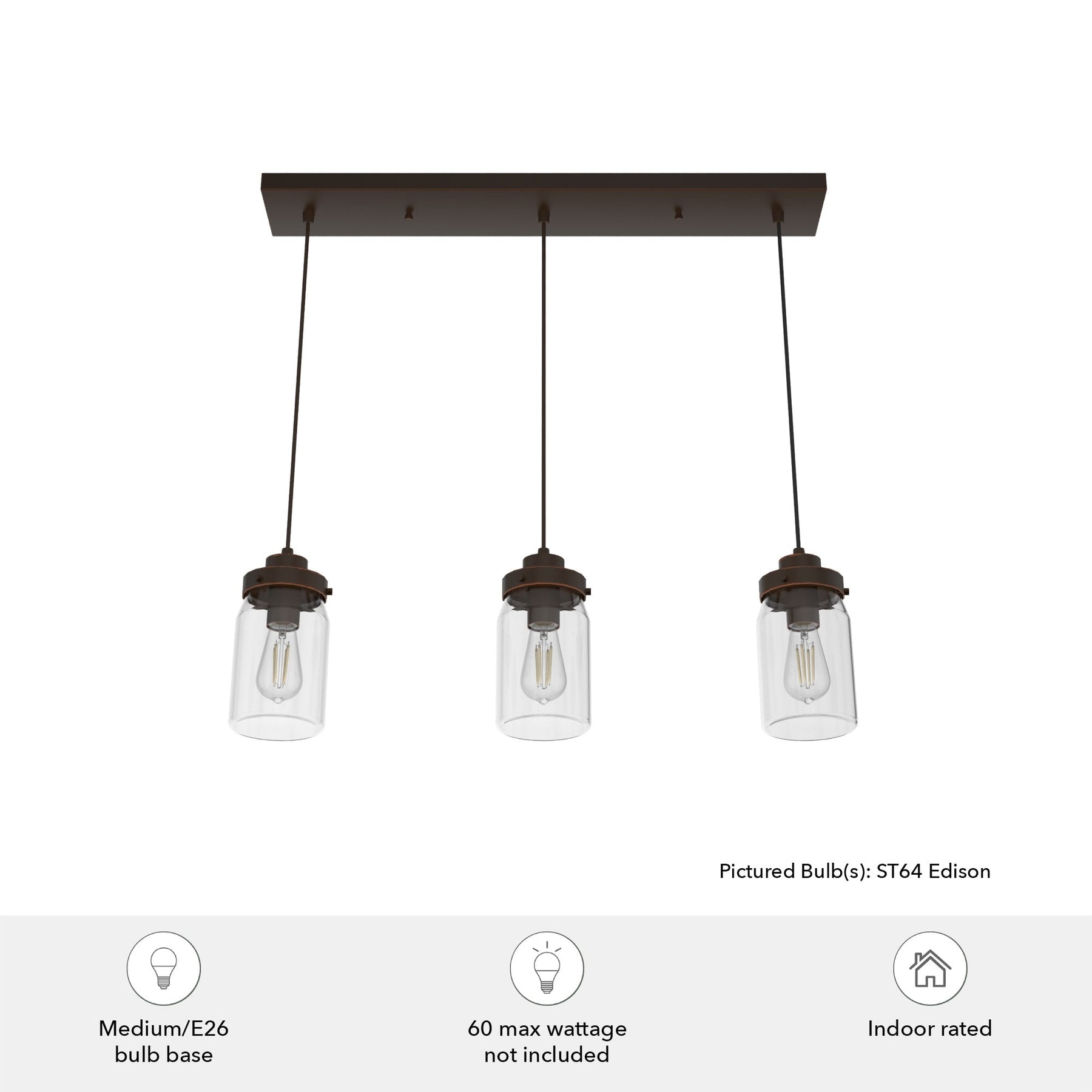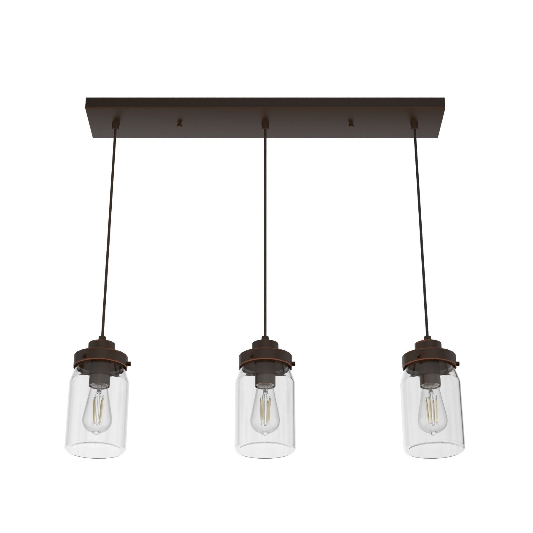 Hunter Devon Park 3-Light Onyx Bengal Farmhouse Clear Glass Jar LED Large Hanging Kitchen Island Light