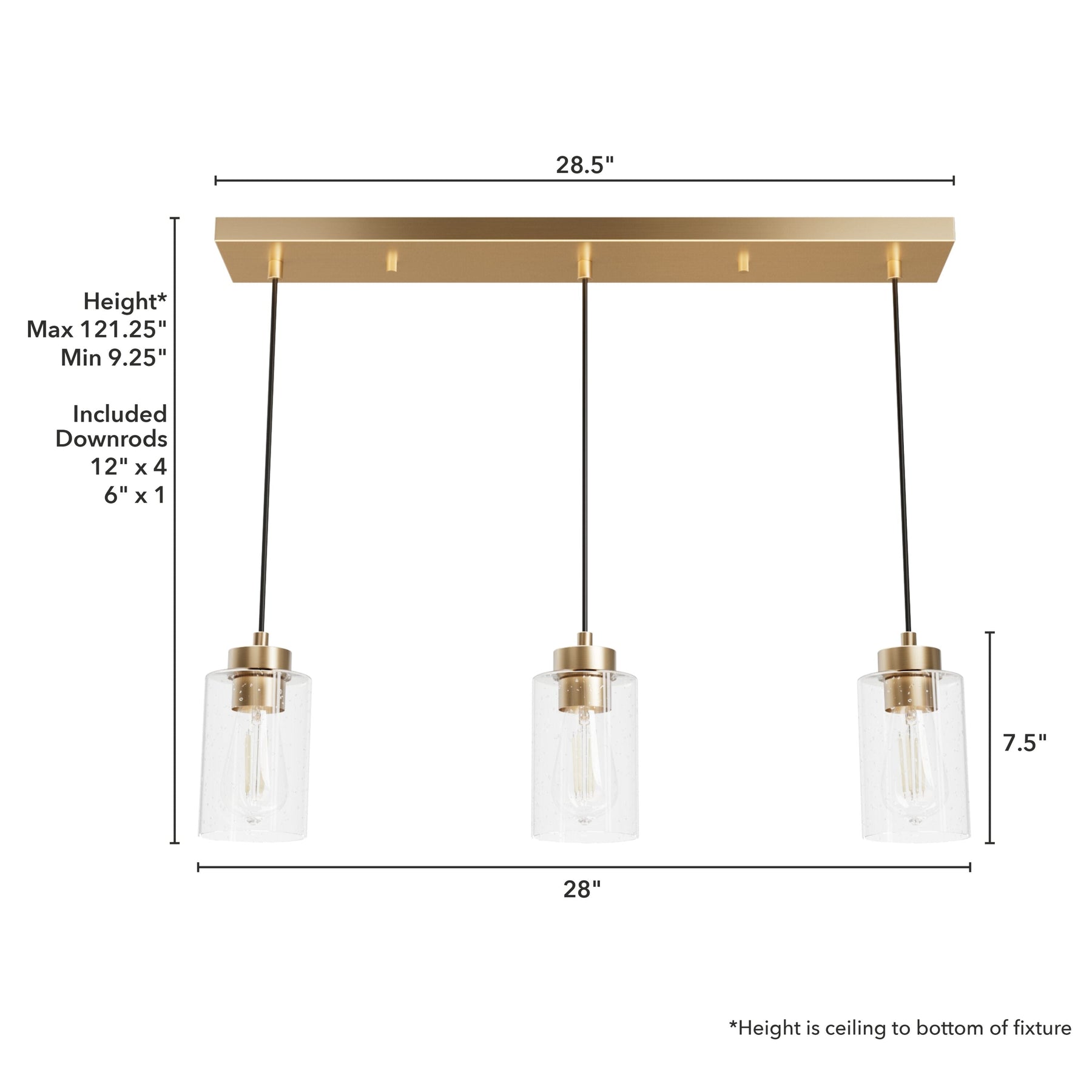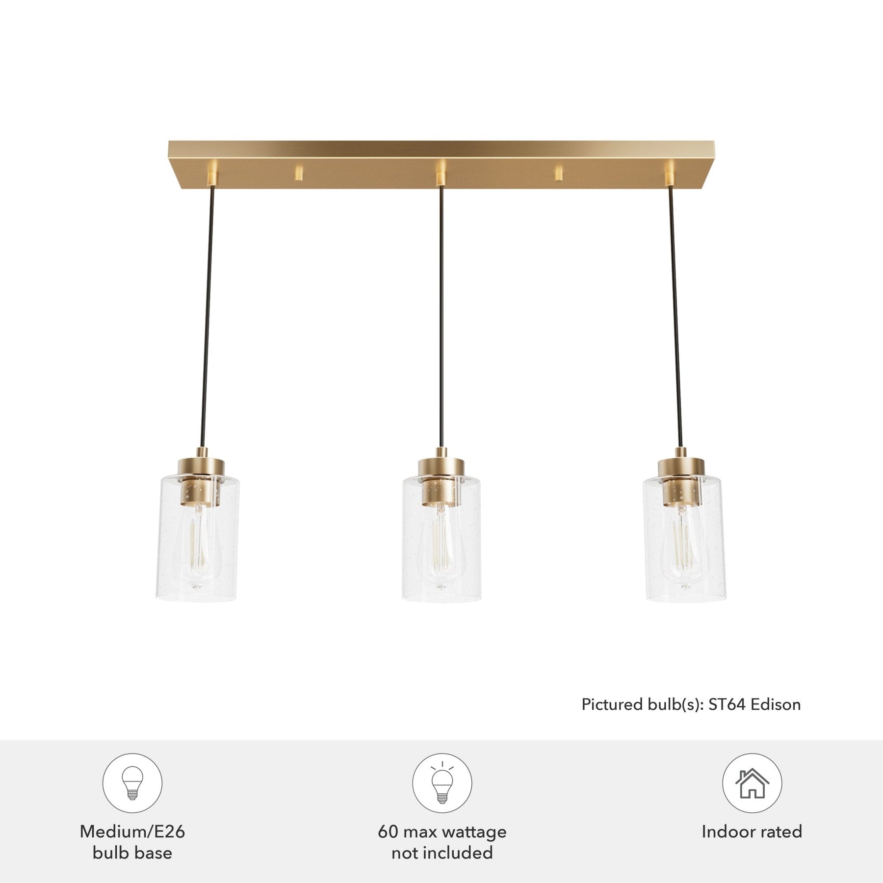 Illuminate your space with the Hunter Hartland 3-Light Alturas Gold Hanging Light, a perfect blend of style and function for any transitional décor. With its elegant alturas gold finish and clear seeded glass, this fixture is designed to brighten up kitchens, dining rooms, and foyers with ease. Ideal for both pros and DIY enthusiasts, it comes with adjustable hanging capabilities and simple assembly features.
