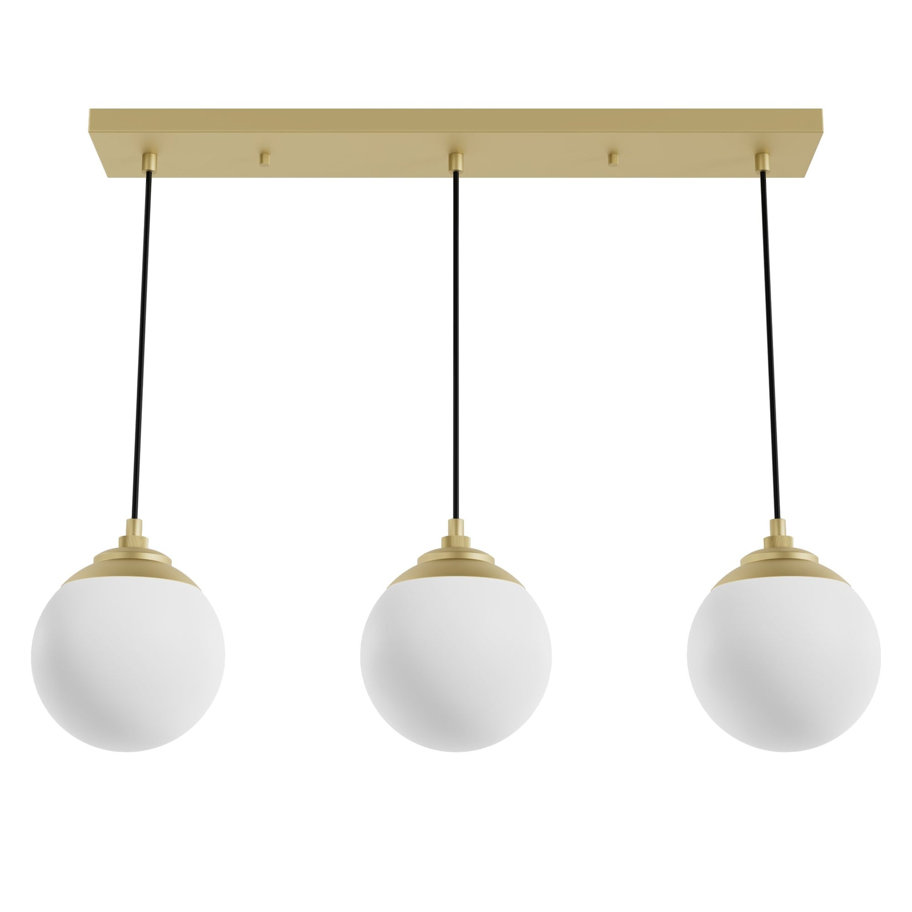 • Premium Design: Mid-century modern with a painted modern brass finish and cased white glass shades.