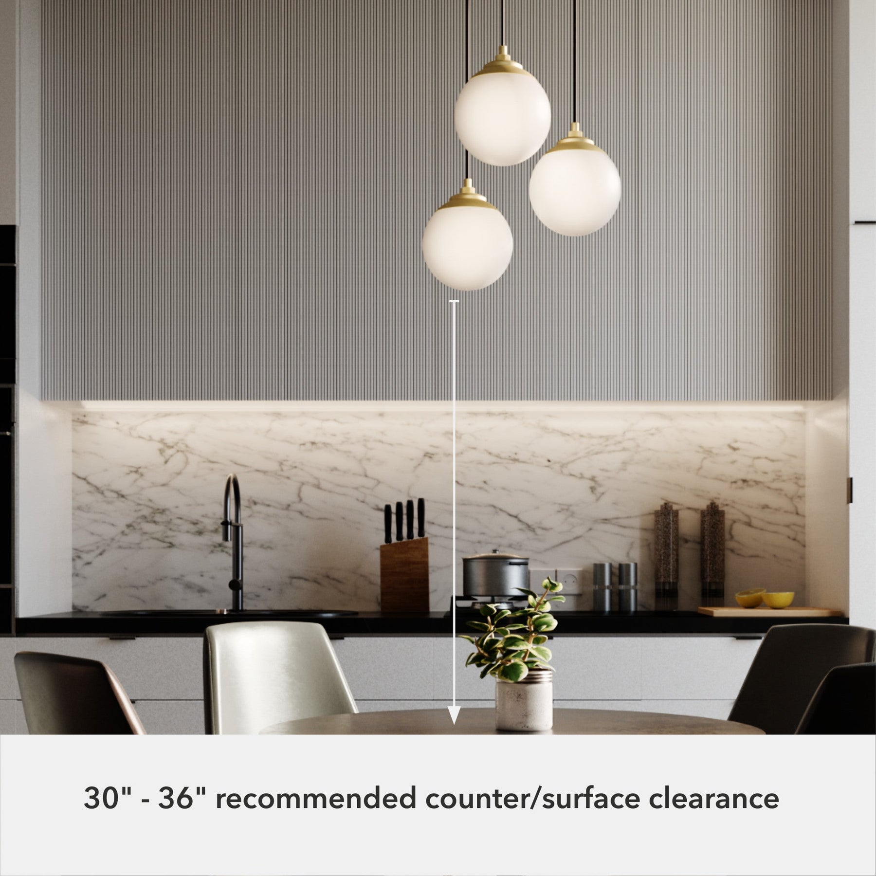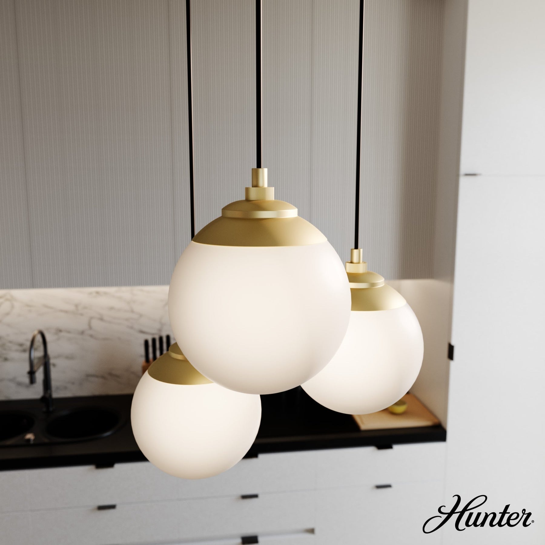 Illuminate your space with the Hunter Hepburn 3-Light Globe Pendant, featuring a striking modern brass finish that adds a touch of mid-century elegance to any room. Crafted with premium materials like cased white glass shading, this LED pendant light is as durable as it is stylish, making it perfect for kitchens, foyers, or dining areas. Easy to install and adjust, it's ideal for enhancing both professional and DIY projects with minimal assembly required.