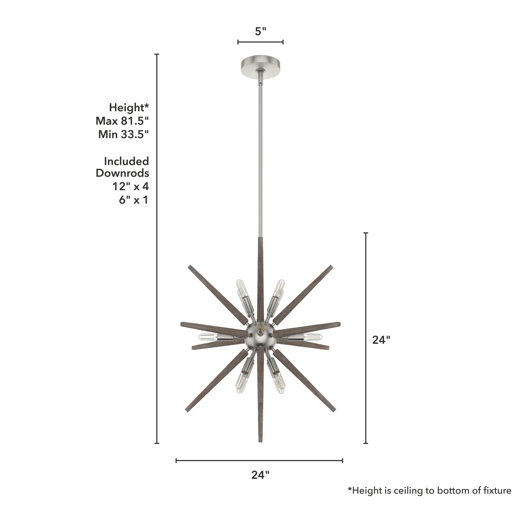 Illuminate your space with the stunning Hunter Jupiter Star 12-Light Mid-century Sputnik LED Island Light. This retro-modern masterpiece is finished in a sleek brushed nickel, perfect for adding a touch of refinement to kitchens, dining areas, and beyond. With adjustable hanging lengths and compatibility with dimmable bulbs, it's both functional and stylish.