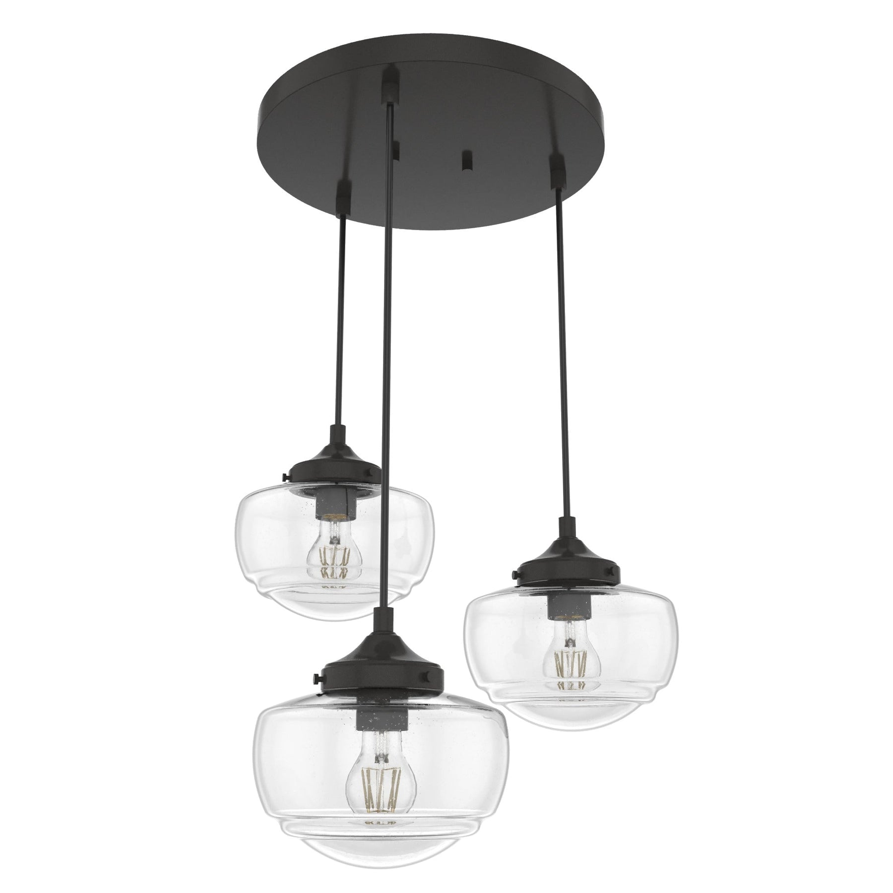 Hunter Saddle Creek 3-Light Noble Bronze Transitional Seeded Glass LED Small Hanging