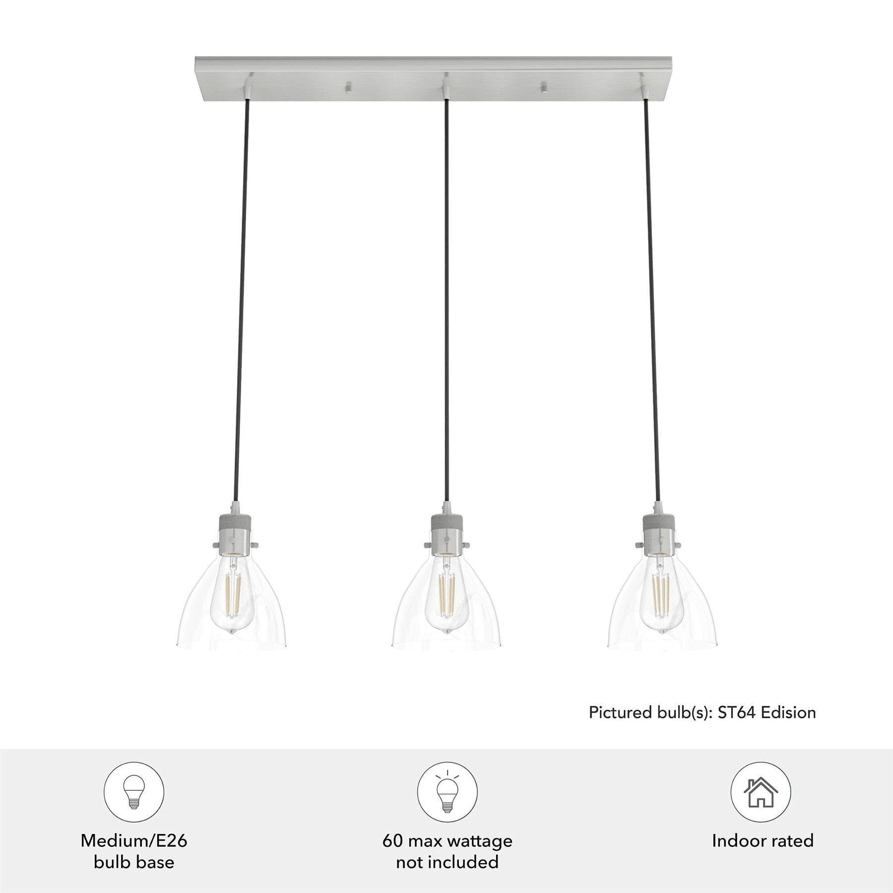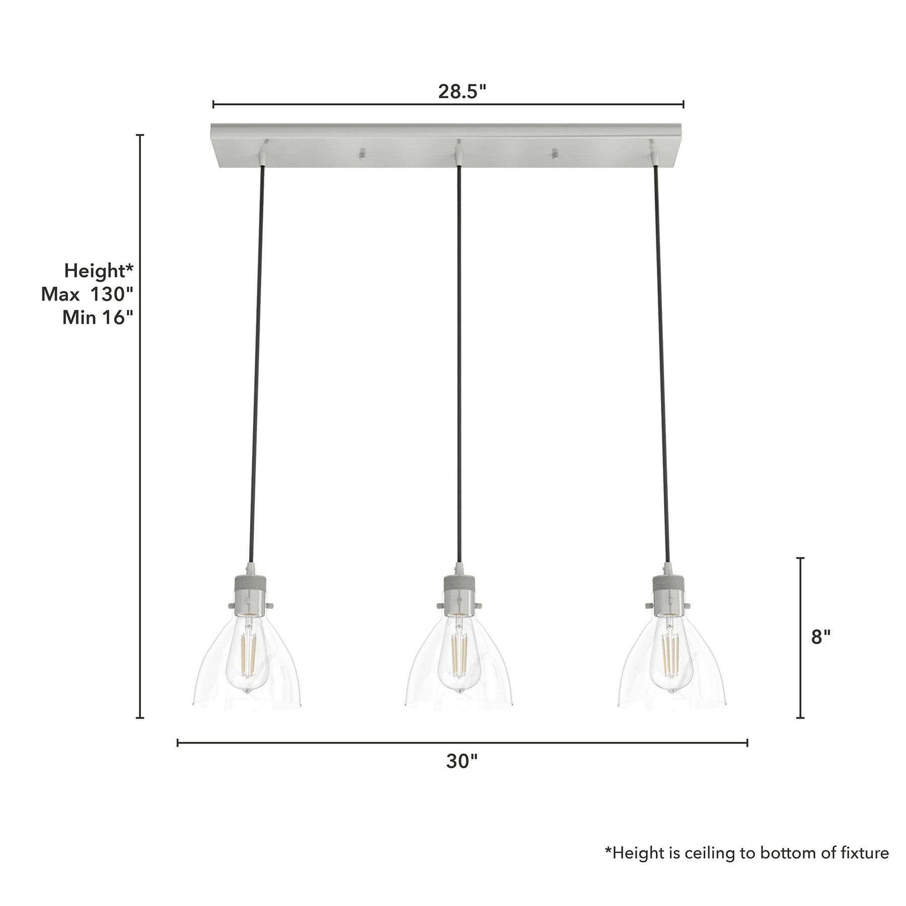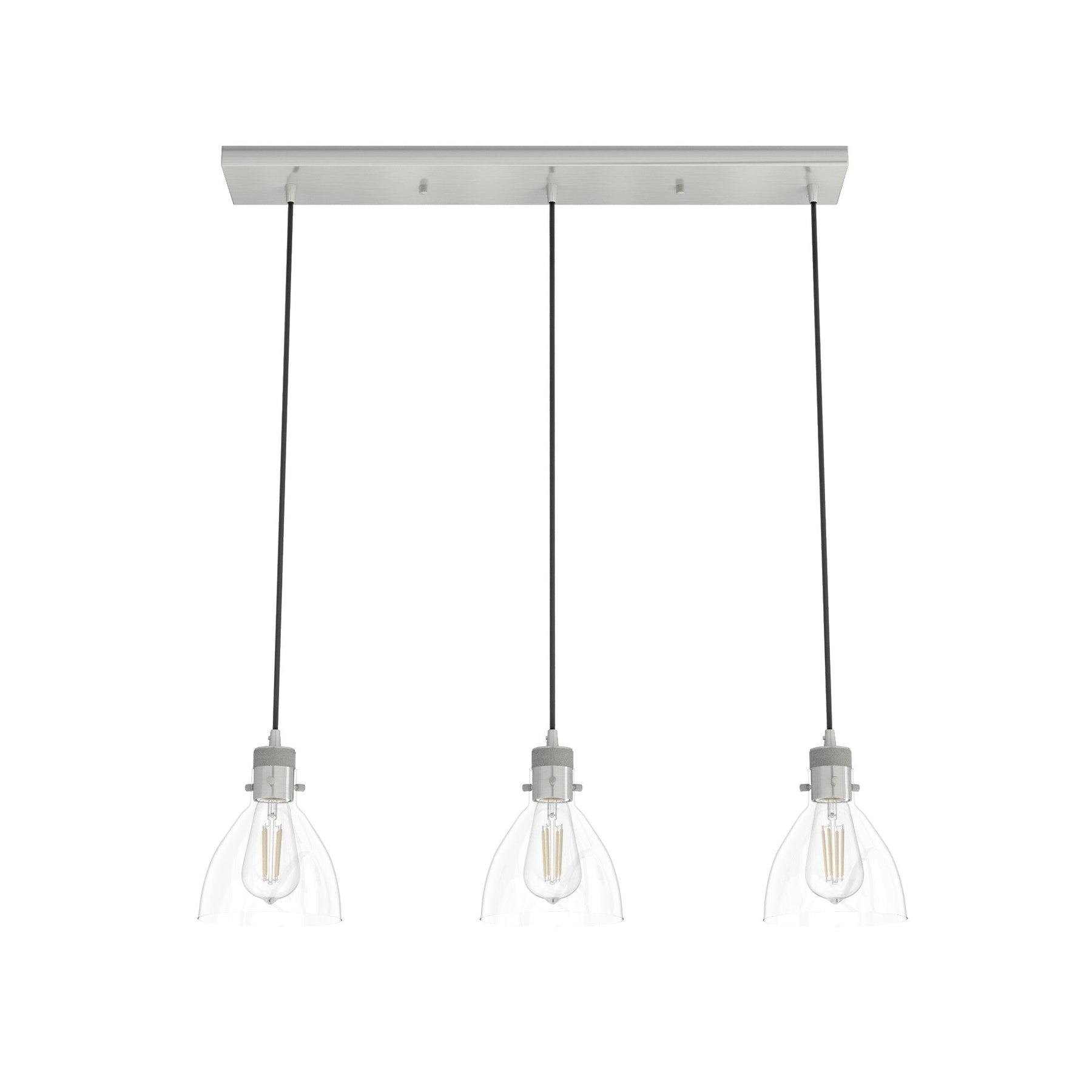 Hunter Van Nuys 3-Light Brushed Nickel Transitional Clear Glass Linear LED Large Hanging