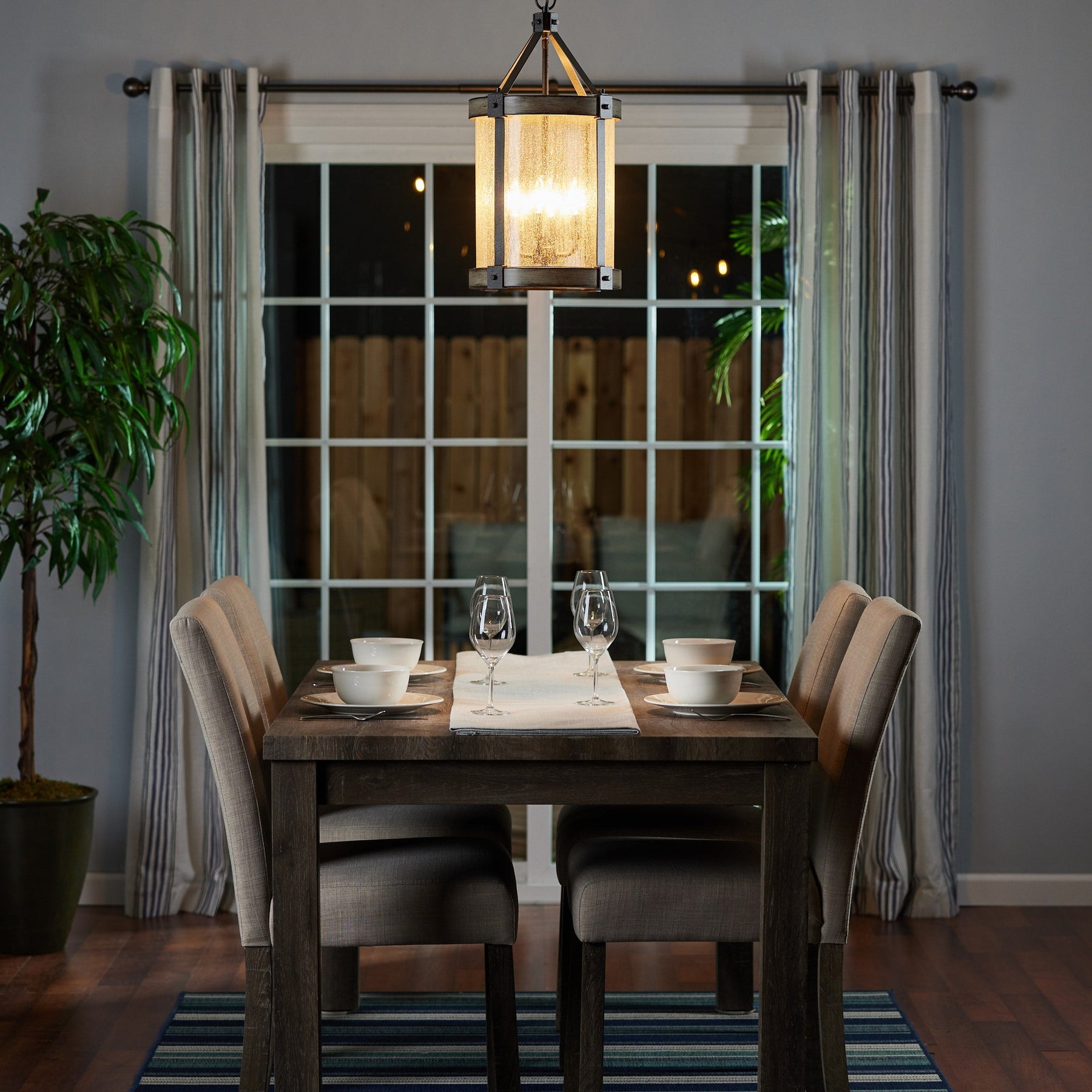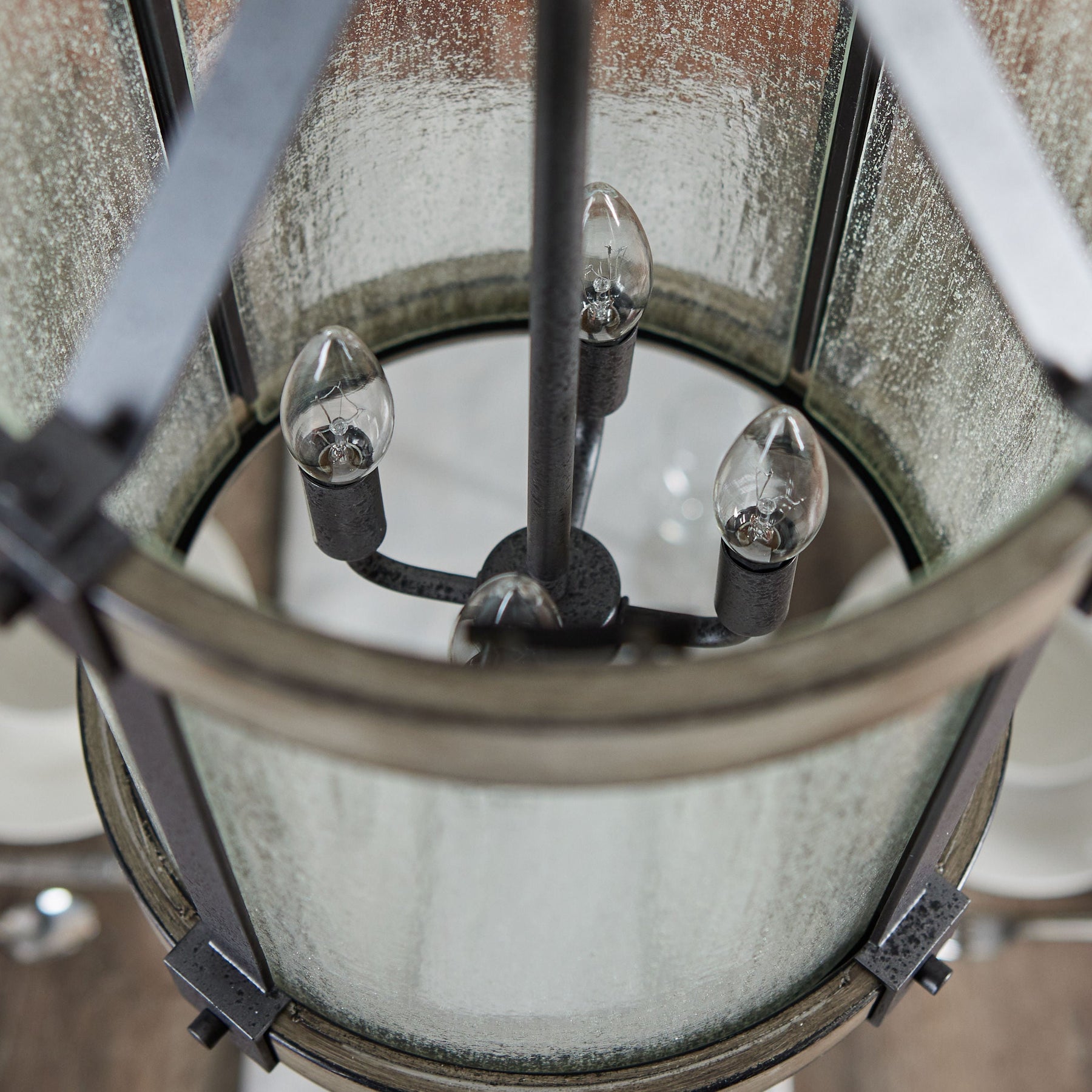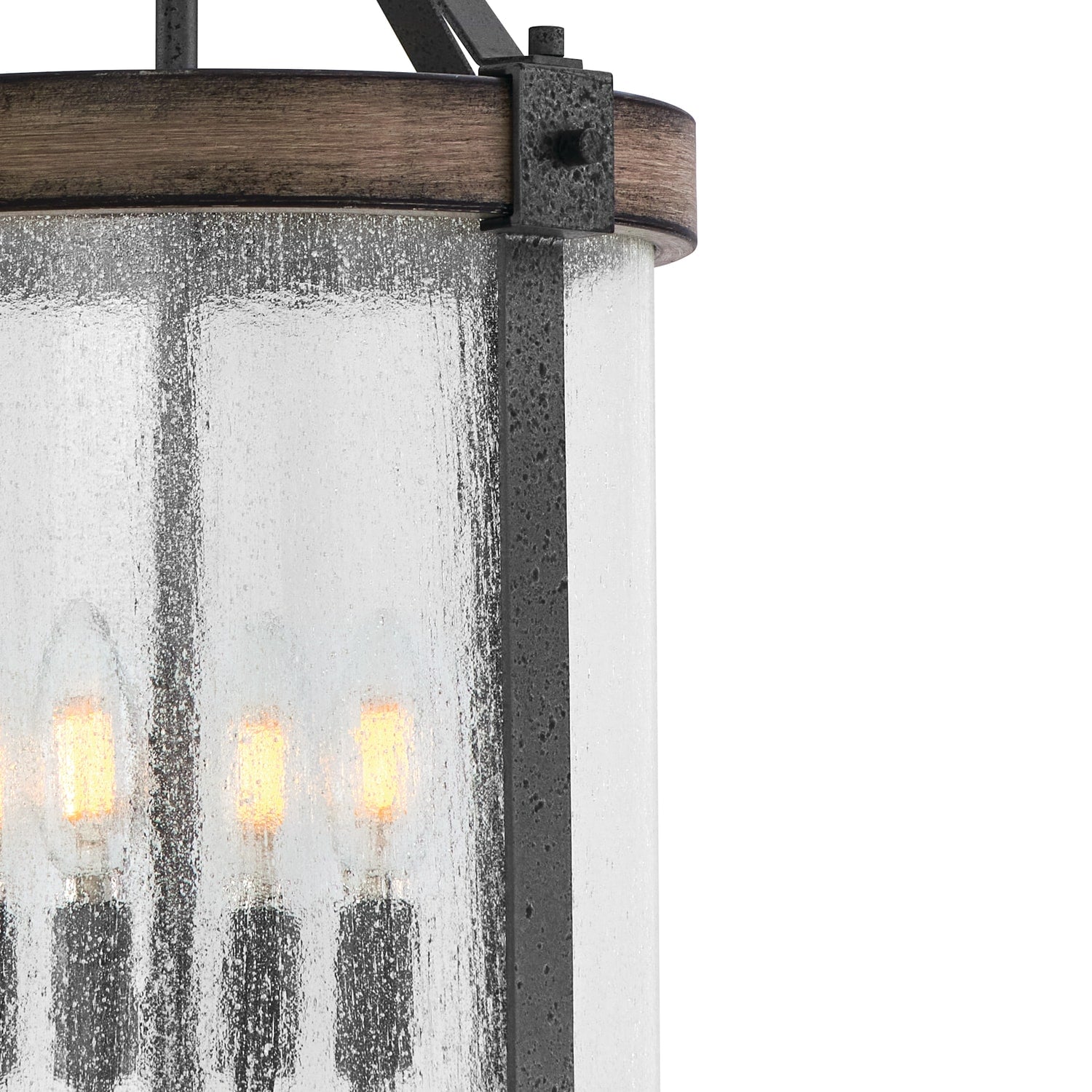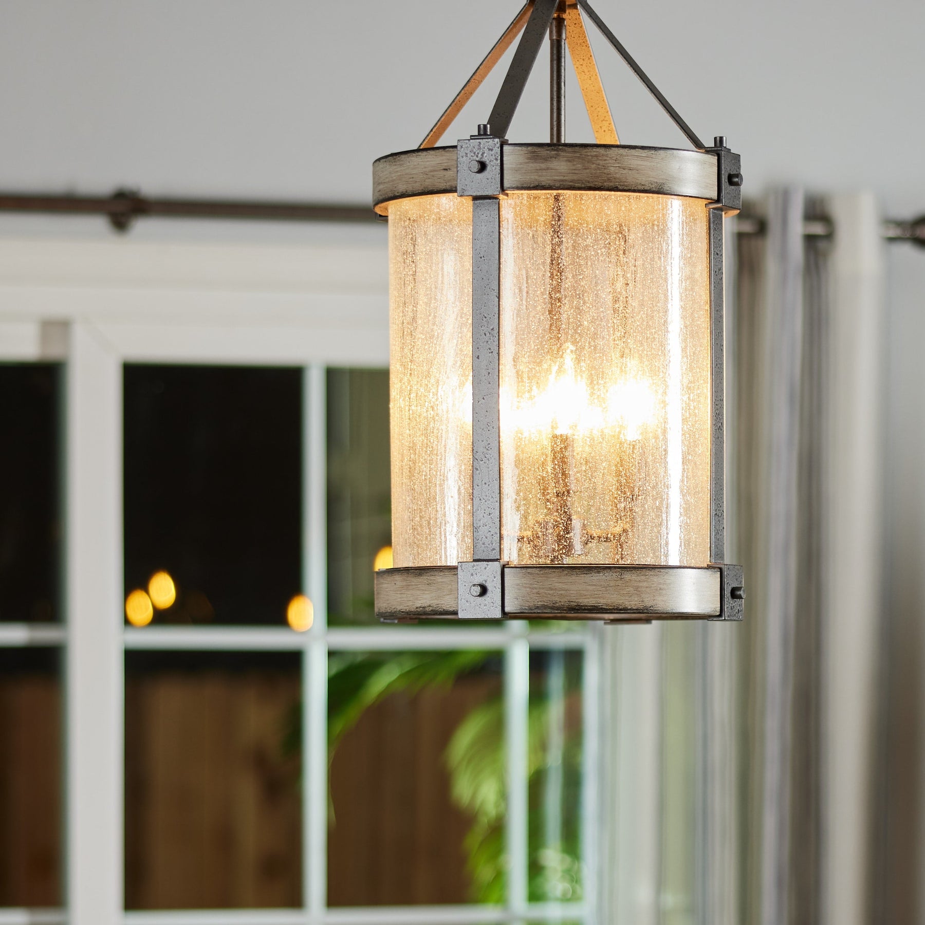 Kichler Barrington 4-Light Anvil Iron and Distressed Antique Grey Rustic Seeded Glass Cylinder Medium Hanging Pendant Light