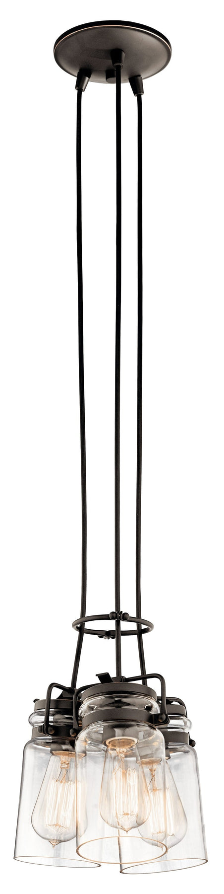 Kichler Brinley 3-Light Olde Bronze Transitional Clear Glass Jar Mini Hanging Pendant Light