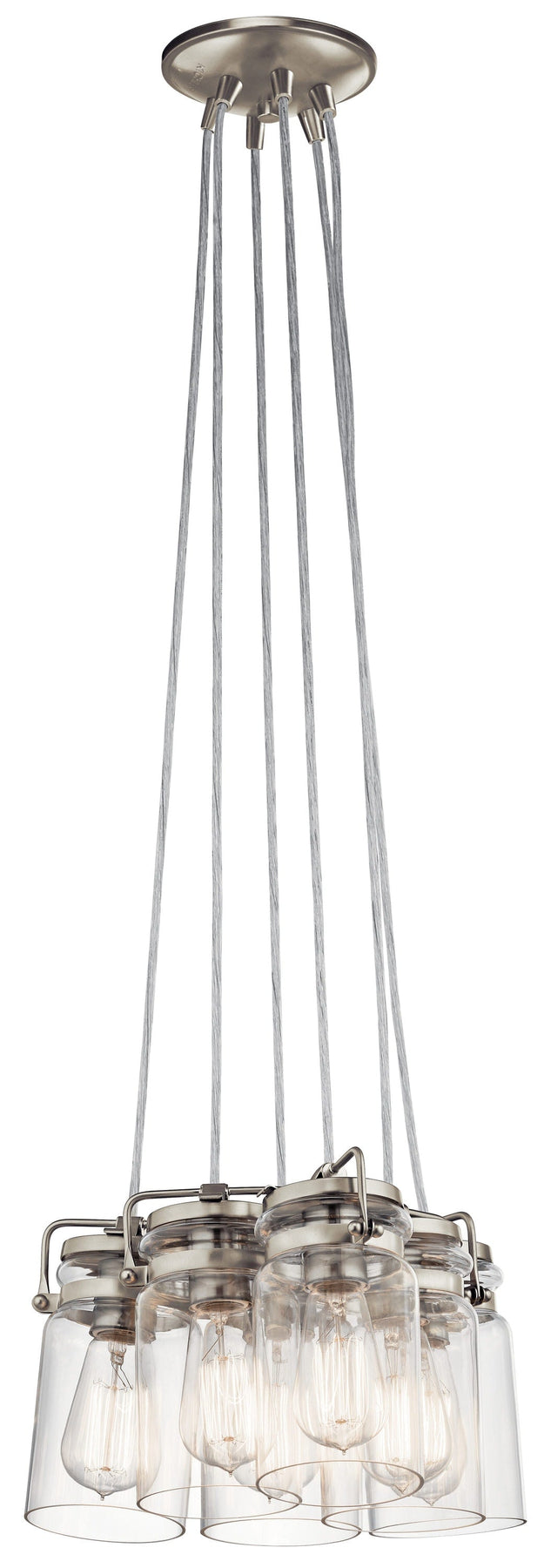 Kichler Brinley 6-Light Brushed Nickel Transitional Clear Glass Jar Medium Hanging Pendant Light