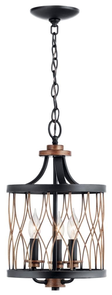 Kichler Brookglen 3-Light Black with Gold Tone French Country/Cottage Drum Mini Hanging Pendant Light