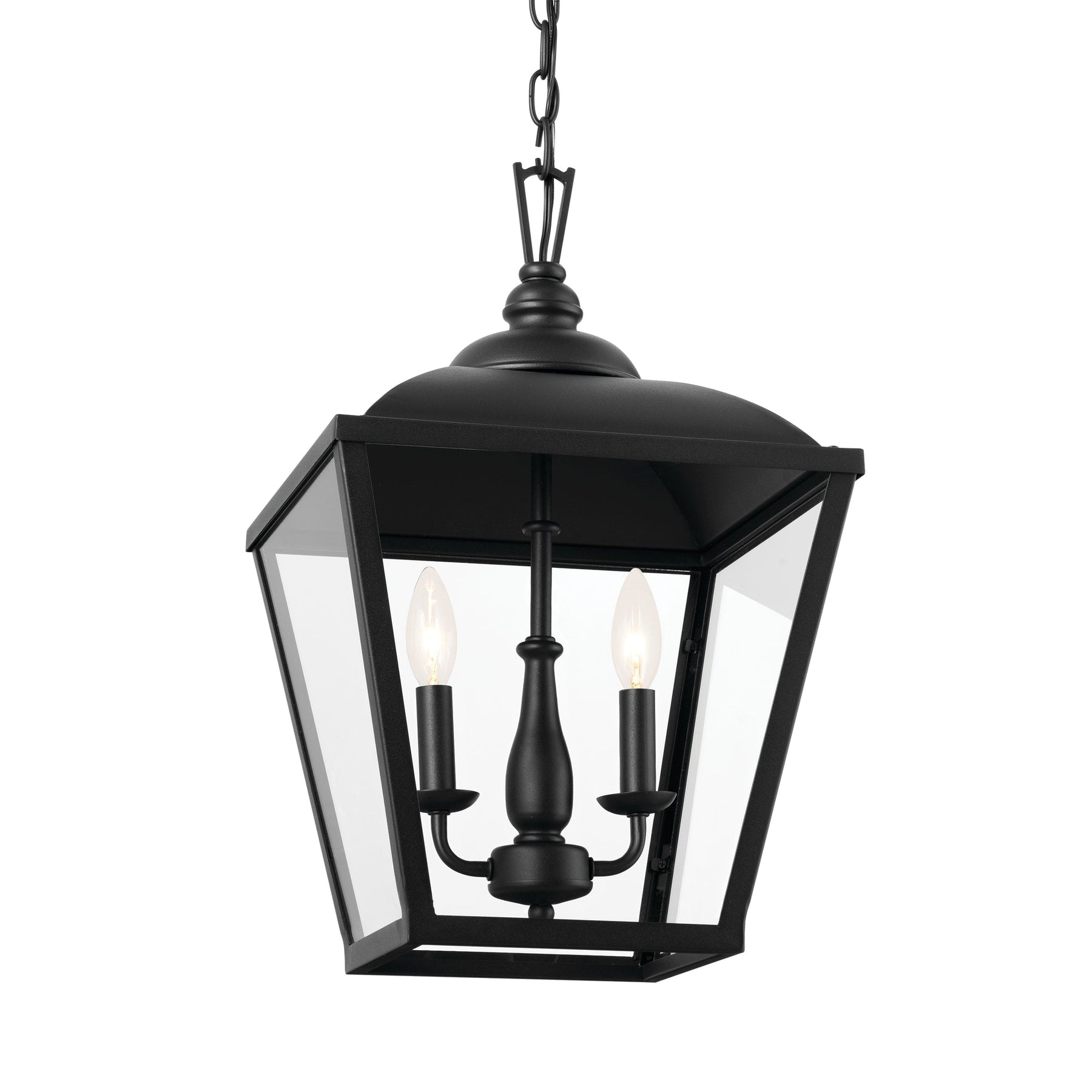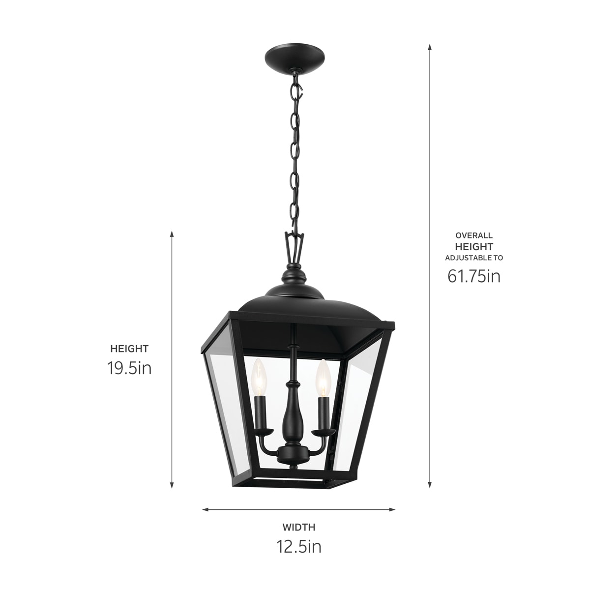 Kichler Dame 3-Light Textured Black Farmhouse Clear Glass Lantern Medium Hanging Pendant Light