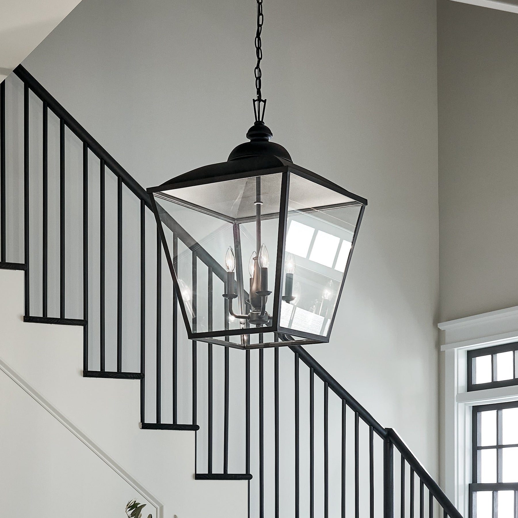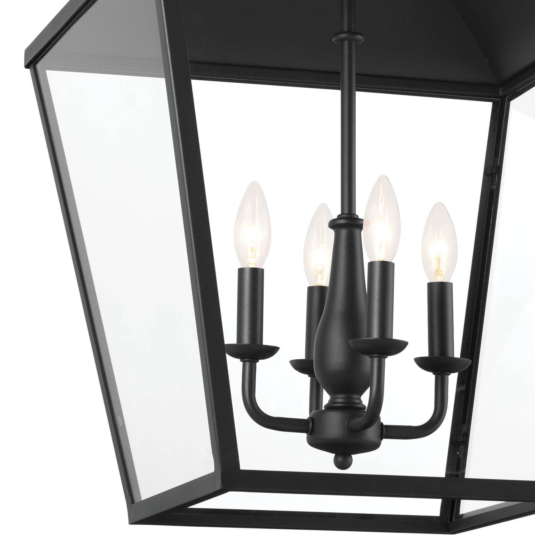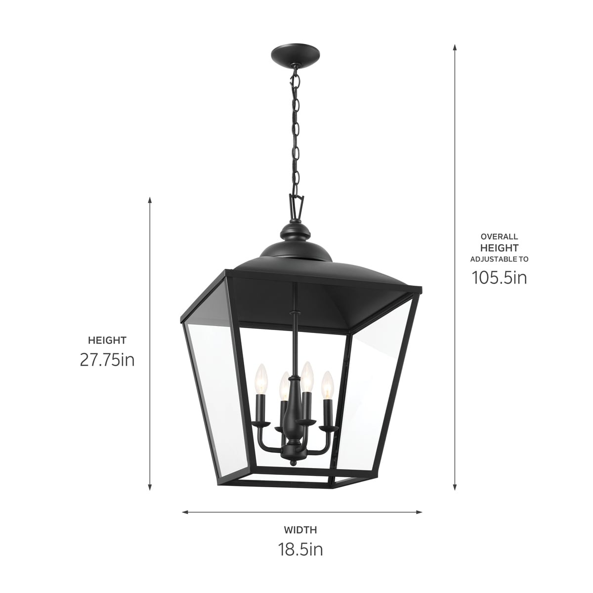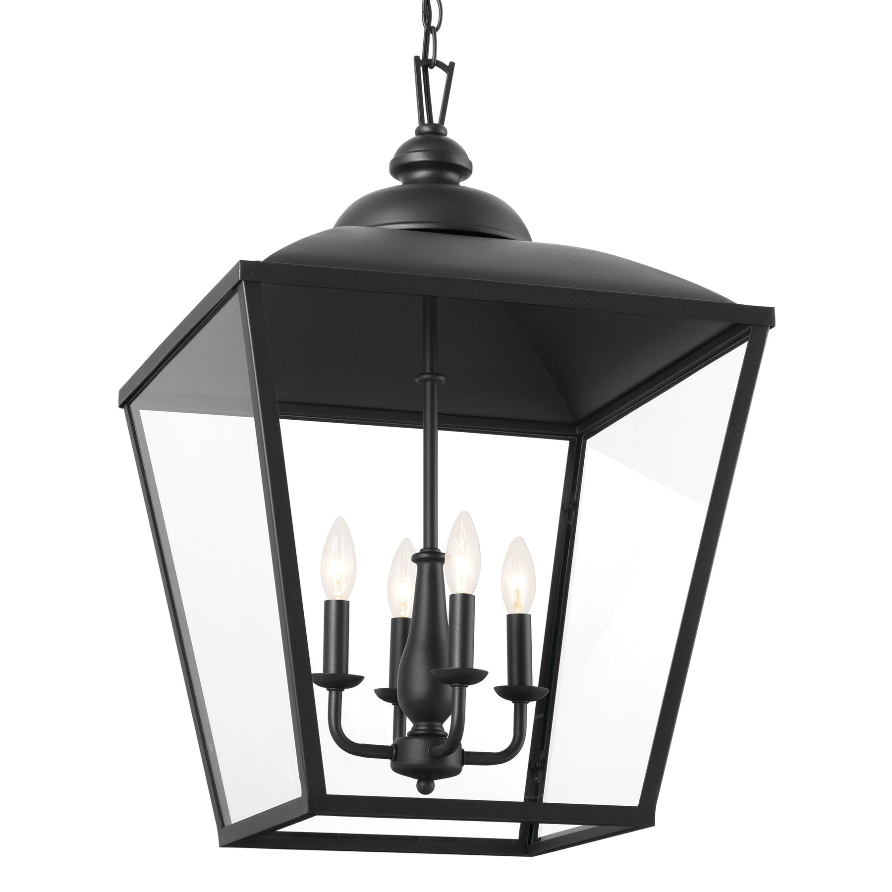Kichler Dame 4-Light Textured Black Farmhouse Clear Glass Lantern Large Hanging Pendant Light
