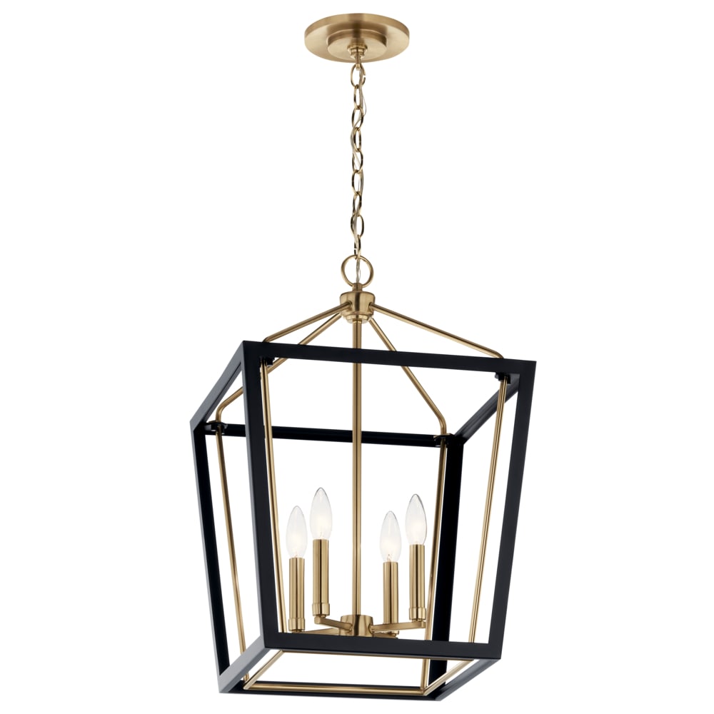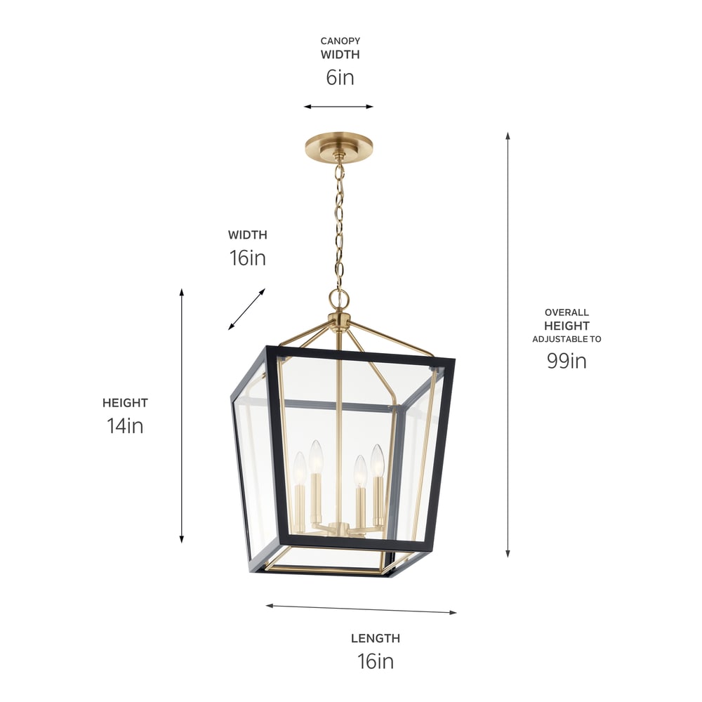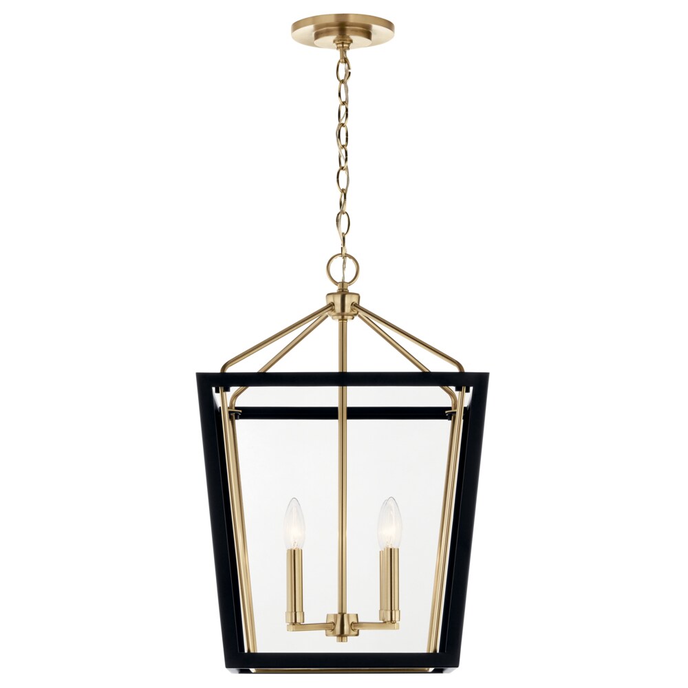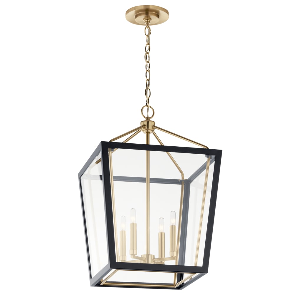 Kichler Delvin 4-Light Champagne Bronze with Black Traditional Clear Glass Lantern Led, Medium Hanging Pendant Light