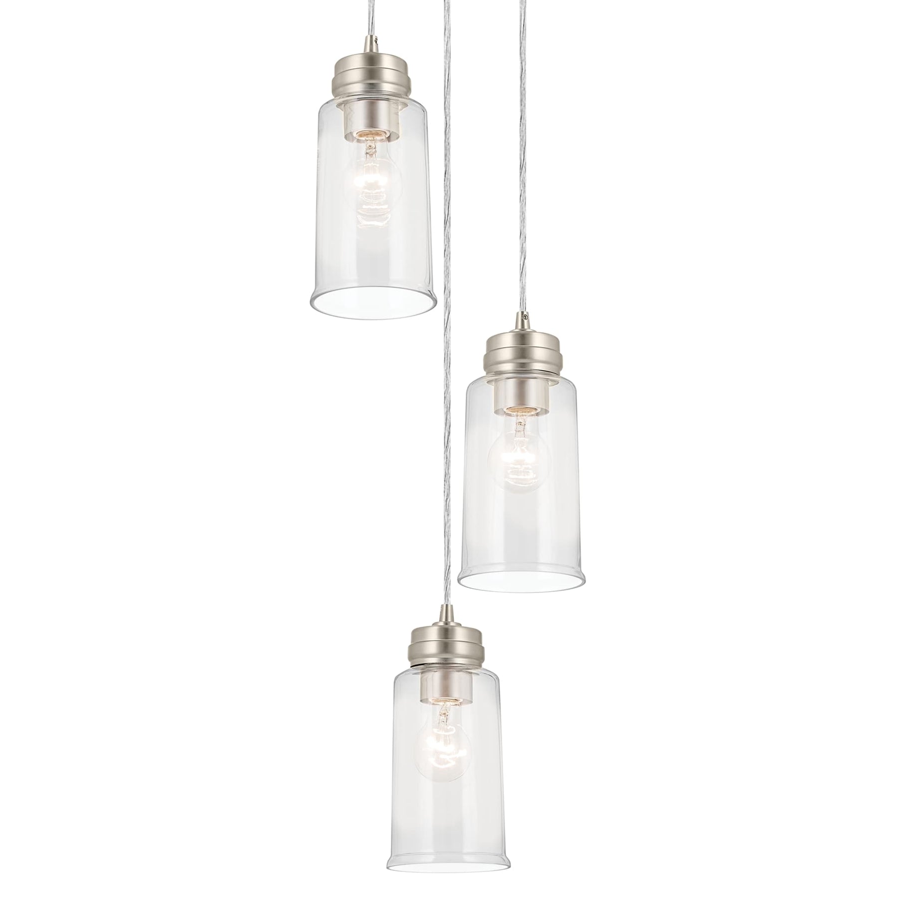 Kichler Jaylen 3-Light Brushed Nickel Farmhouse Clear Glass Cylinder Medium Hanging Pendant Light