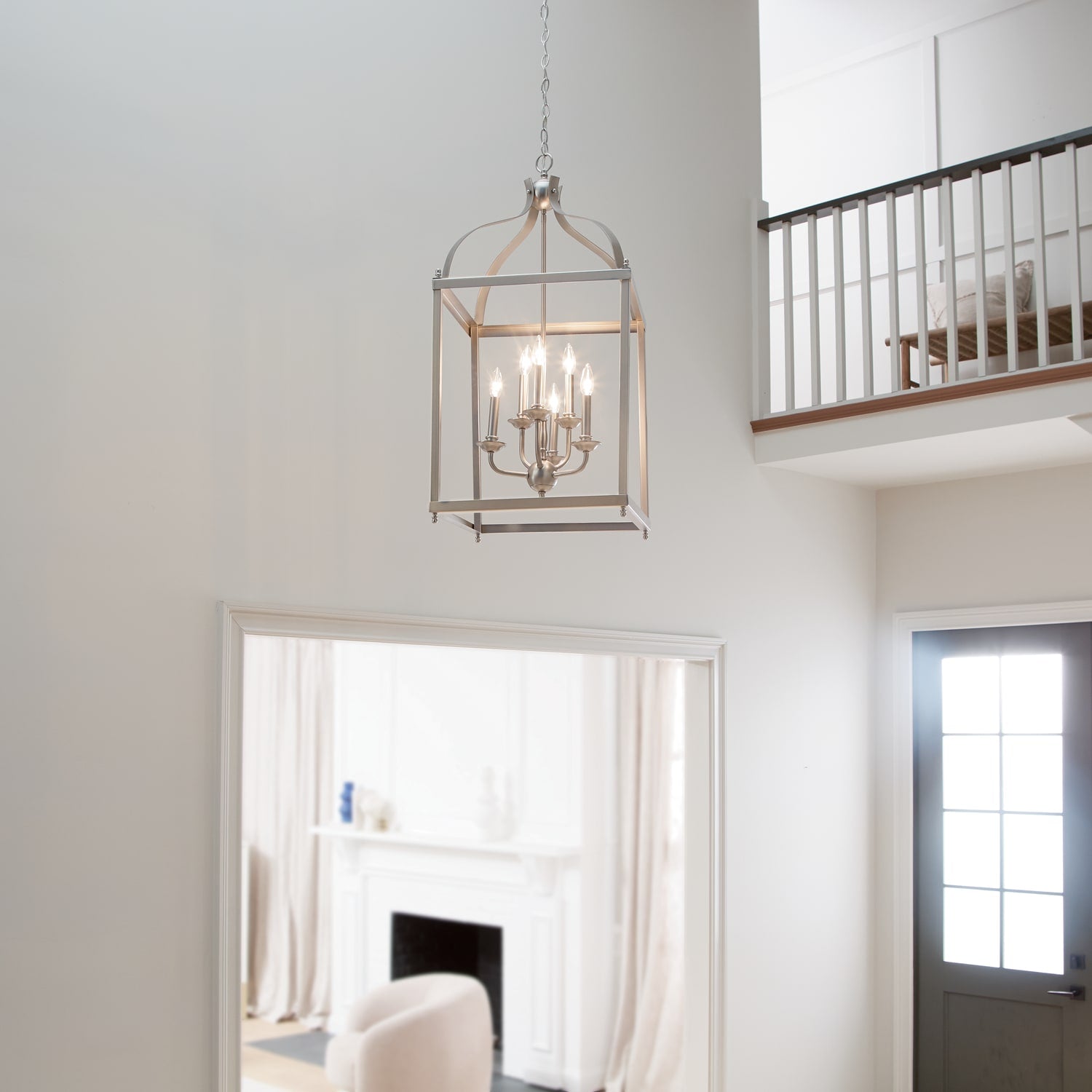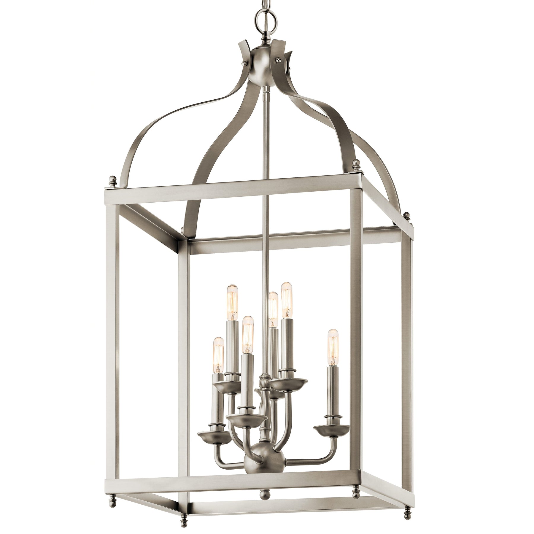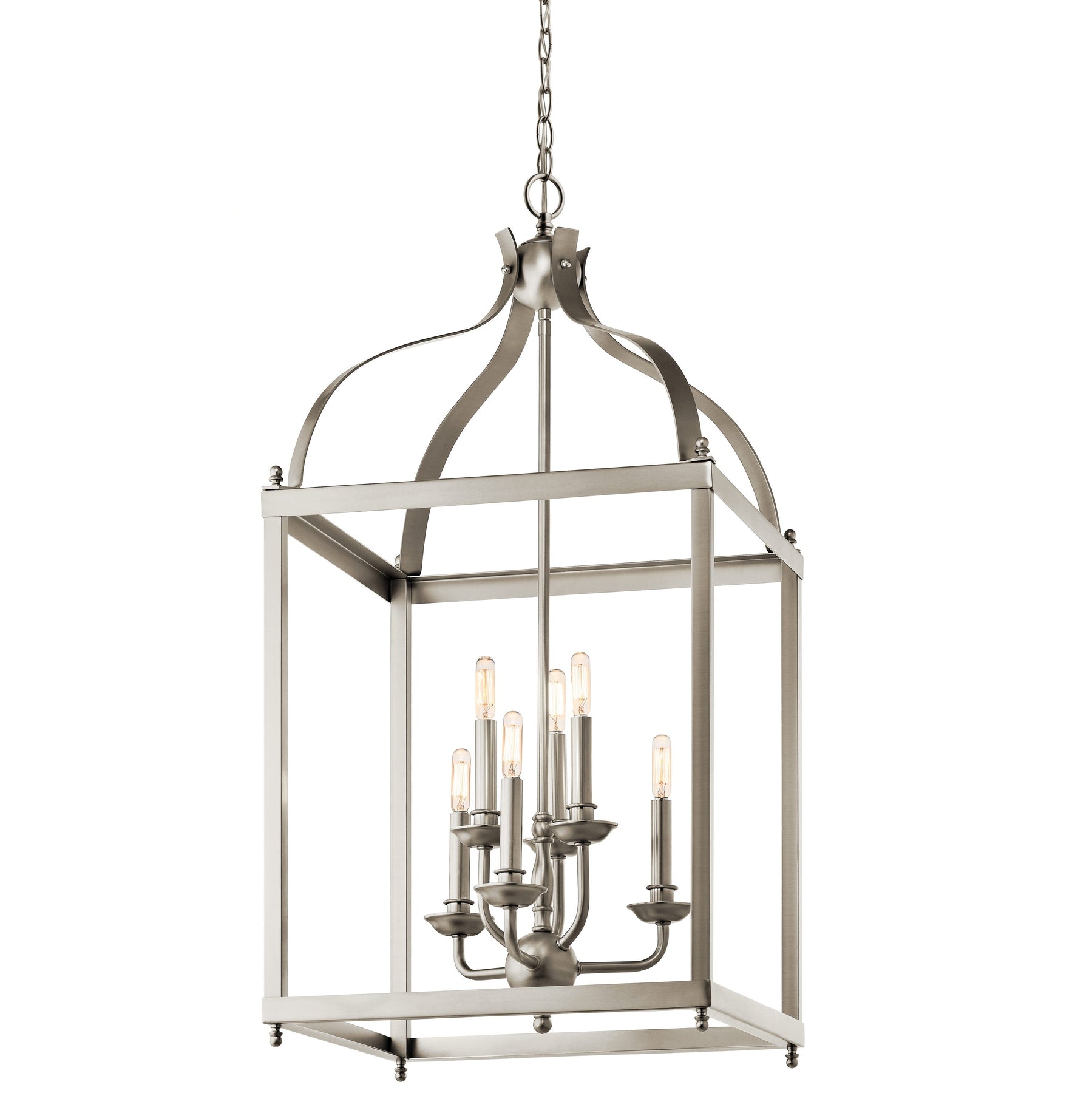 Kichler Larkin 6-Light Brushed Nickel Transitional Lantern Medium Hanging Pendant Light