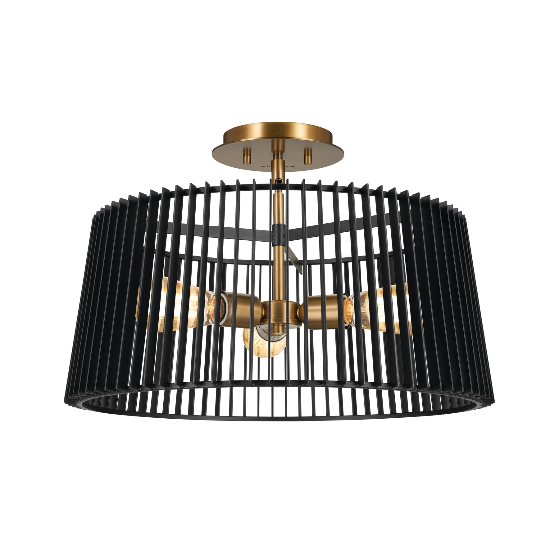 Kichler Linara 3-Light Black Mid-century Drum Medium Hanging Convertible Pendant/semi-flush