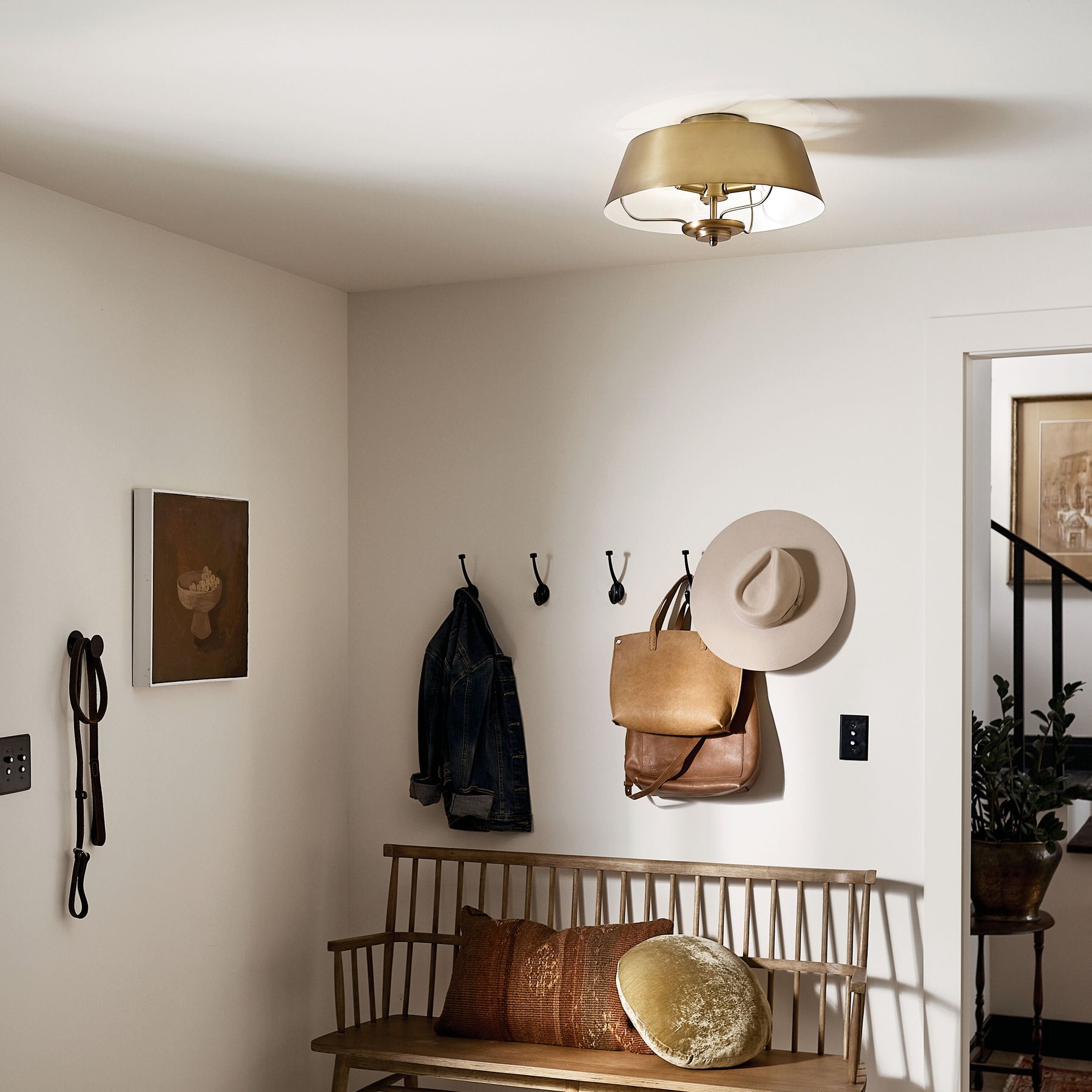 Kichler Luella 3-Light Brushed Natural Brass Traditional Drum Medium Hanging Convertible Pendant/semi-flush
