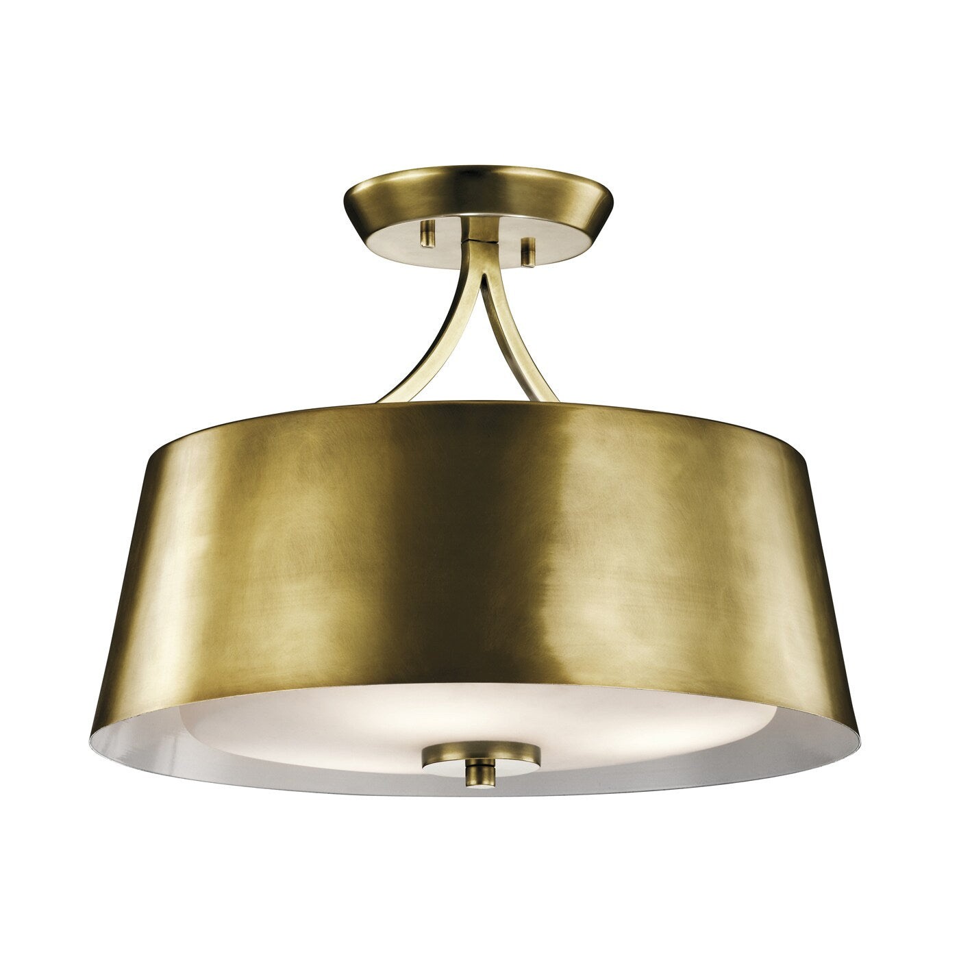 Kichler Maclain 3-Light Natural Brass Transitional Etched Glass Drum Medium Hanging Pendant Light