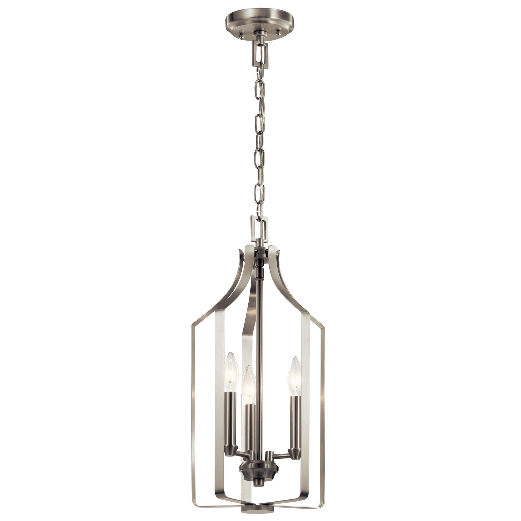 Elevate your space with the Kichler Morrigan 3-Light Brushed Nickel Pendant Light, a stylish blend of traditional charm and modern elegance. Perfect for foyers, dining rooms, or living areas, this medium-sized hanging lantern adds a sophisticated touch to any room with its classic brushed nickel finish and timeless design.