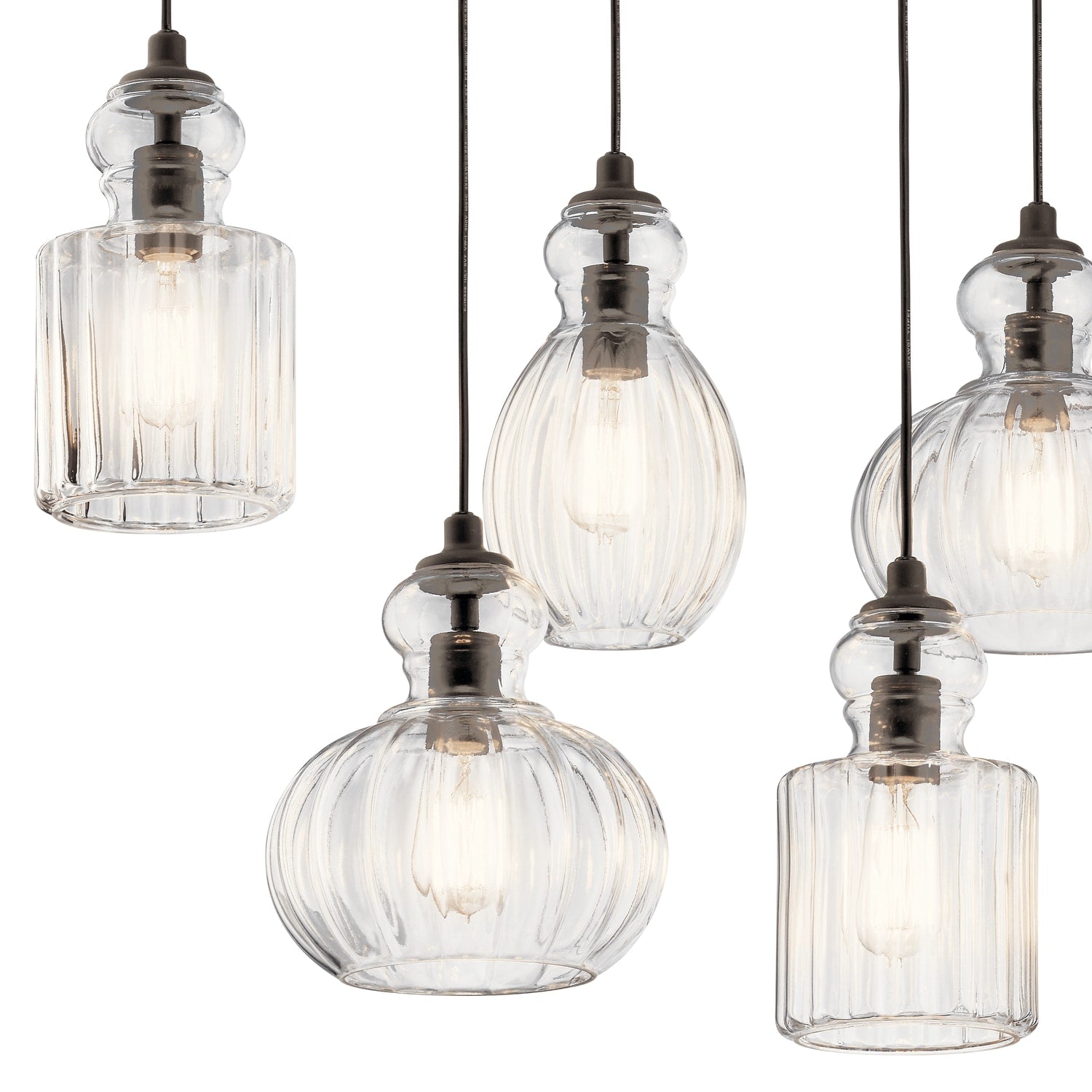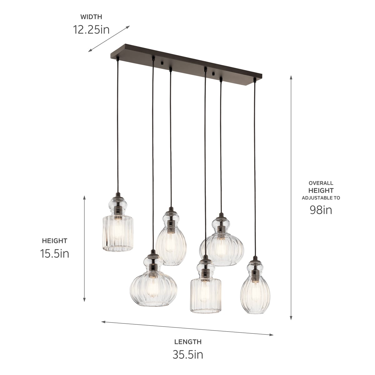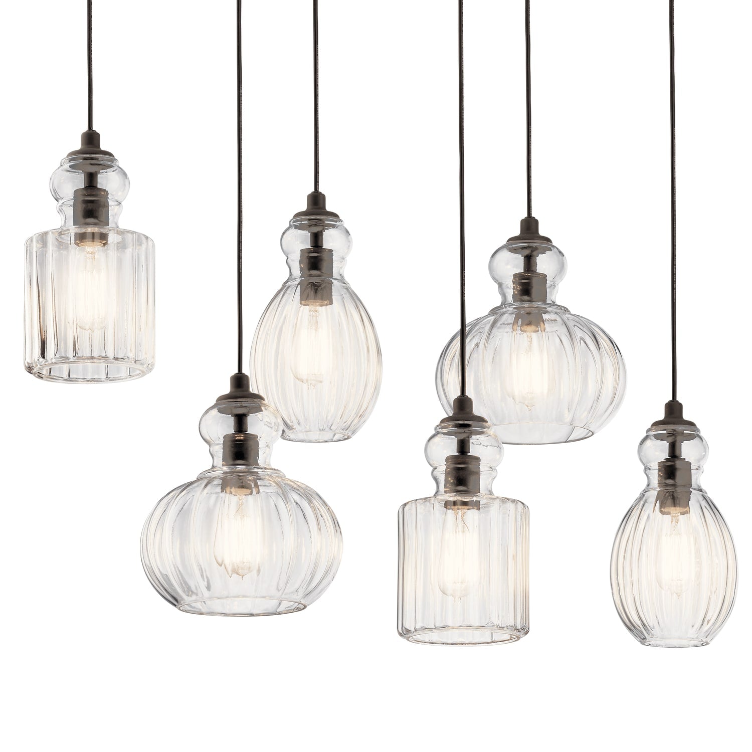 Kichler Riviera 6-Light Olde Bronze Transitional Ribbed Glass Large Hanging Multi-light