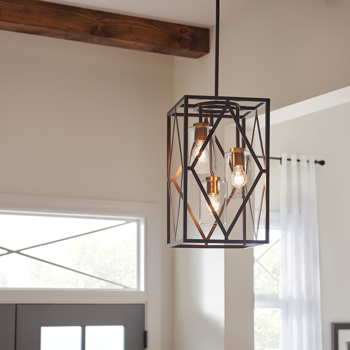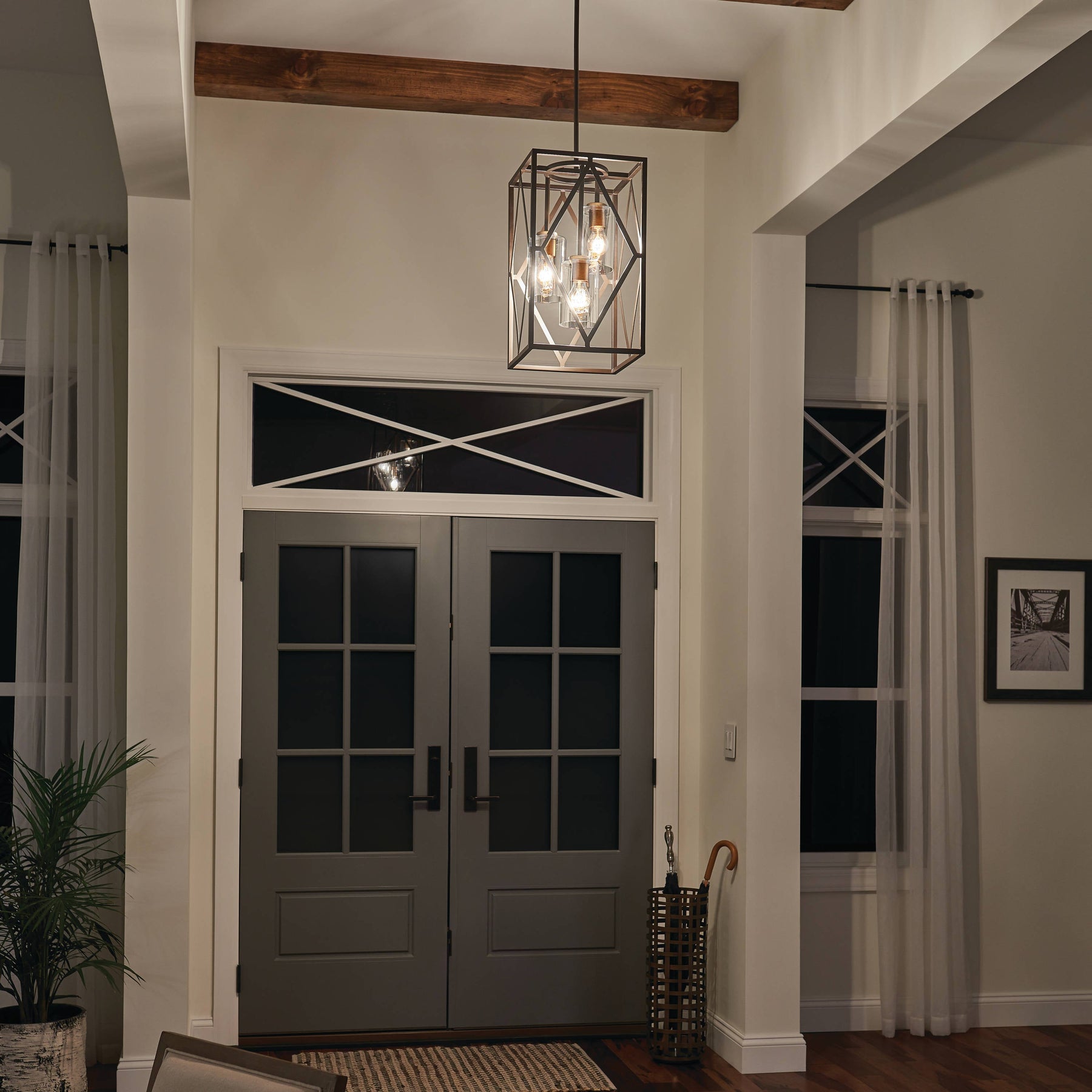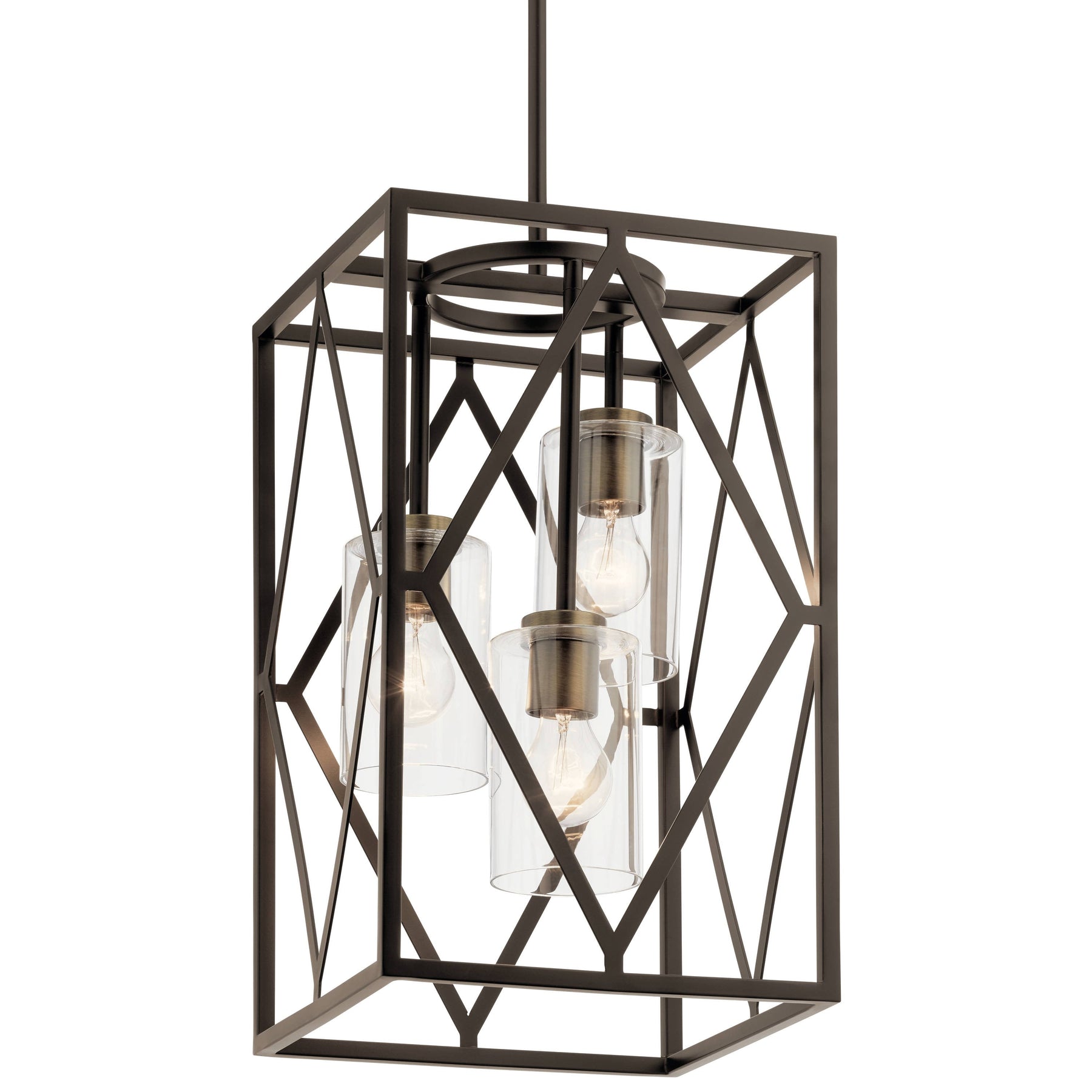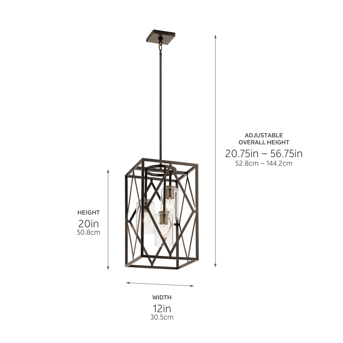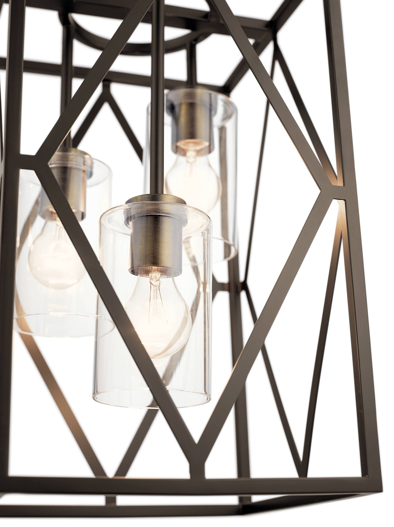 Illuminate your home with elegance using the Kichler Solander 3-Light Geometric Hanging Pendant. Its distinctive olde bronze finish and clear glass panels create a stunning blend of traditional style and modern sophistication, making it an ideal centerpiece for any room.