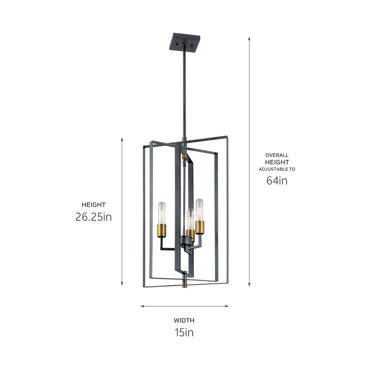 The Kichler Taubert 3-Light Pendant Light elevates your living space with its striking mid-century geometric design and industrial inspiration. With a large, layered box silhouette and a sleek black finish, this fixture provides ambient lighting perfect for dining rooms, foyers, and more.