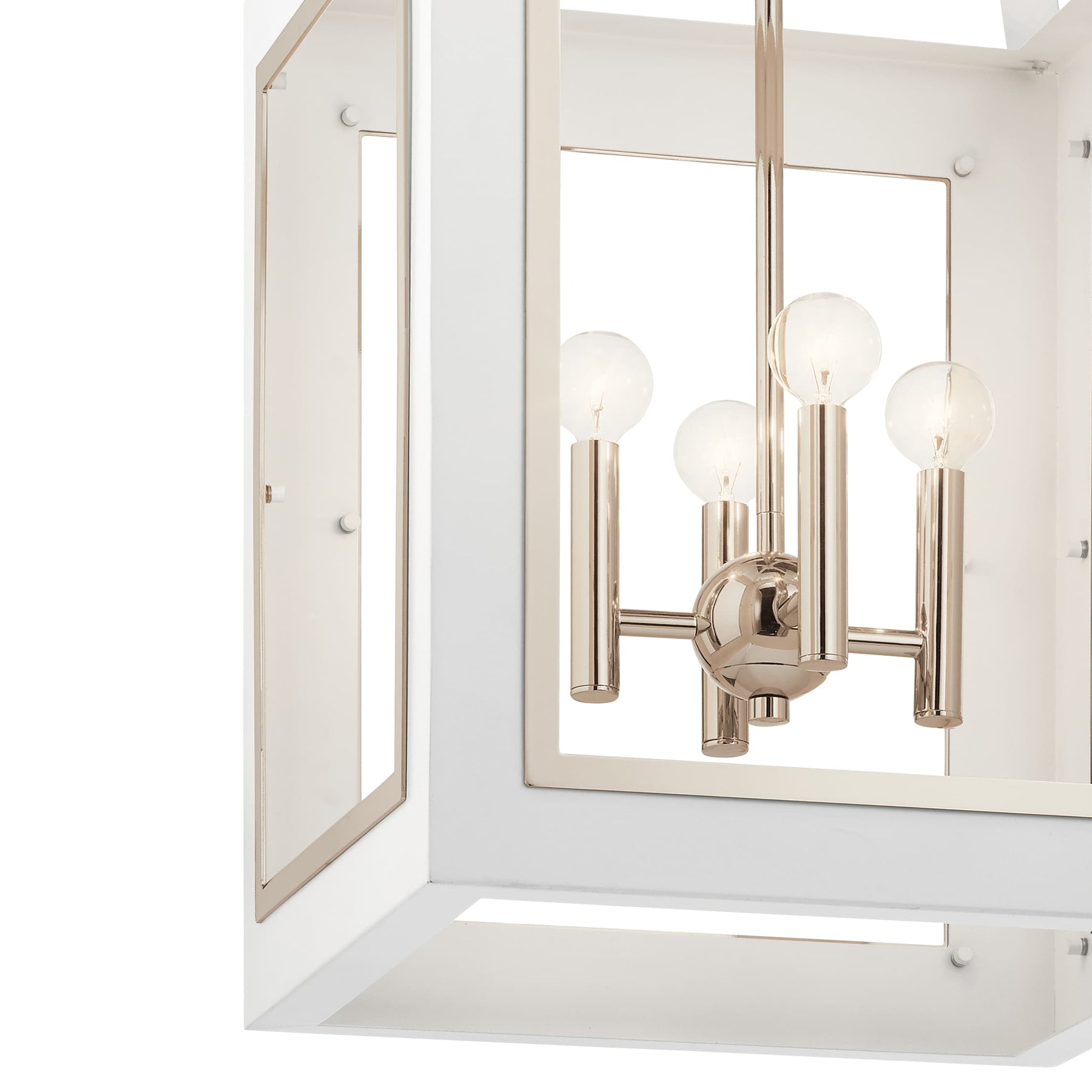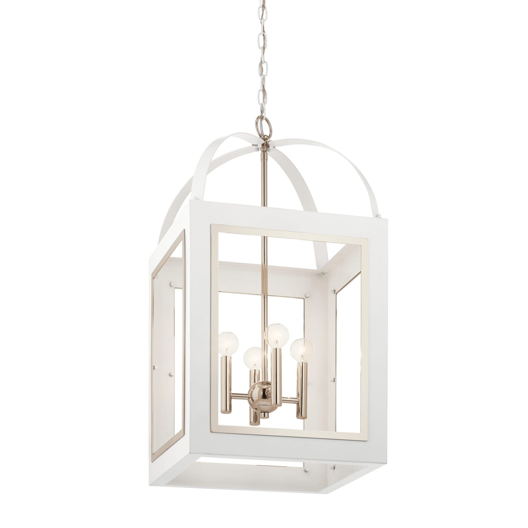 Kichler Vath 4-Light White W/Polished Nickel Industrial Lantern Large Hanging Pendant Light