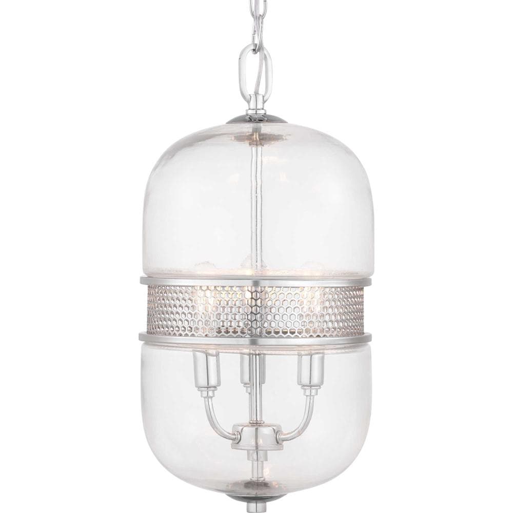 Progress Lighting Cayce 3-Light Polished Chrome Mid-century Clear Glass Urn Mini Hanging Pendant Light
