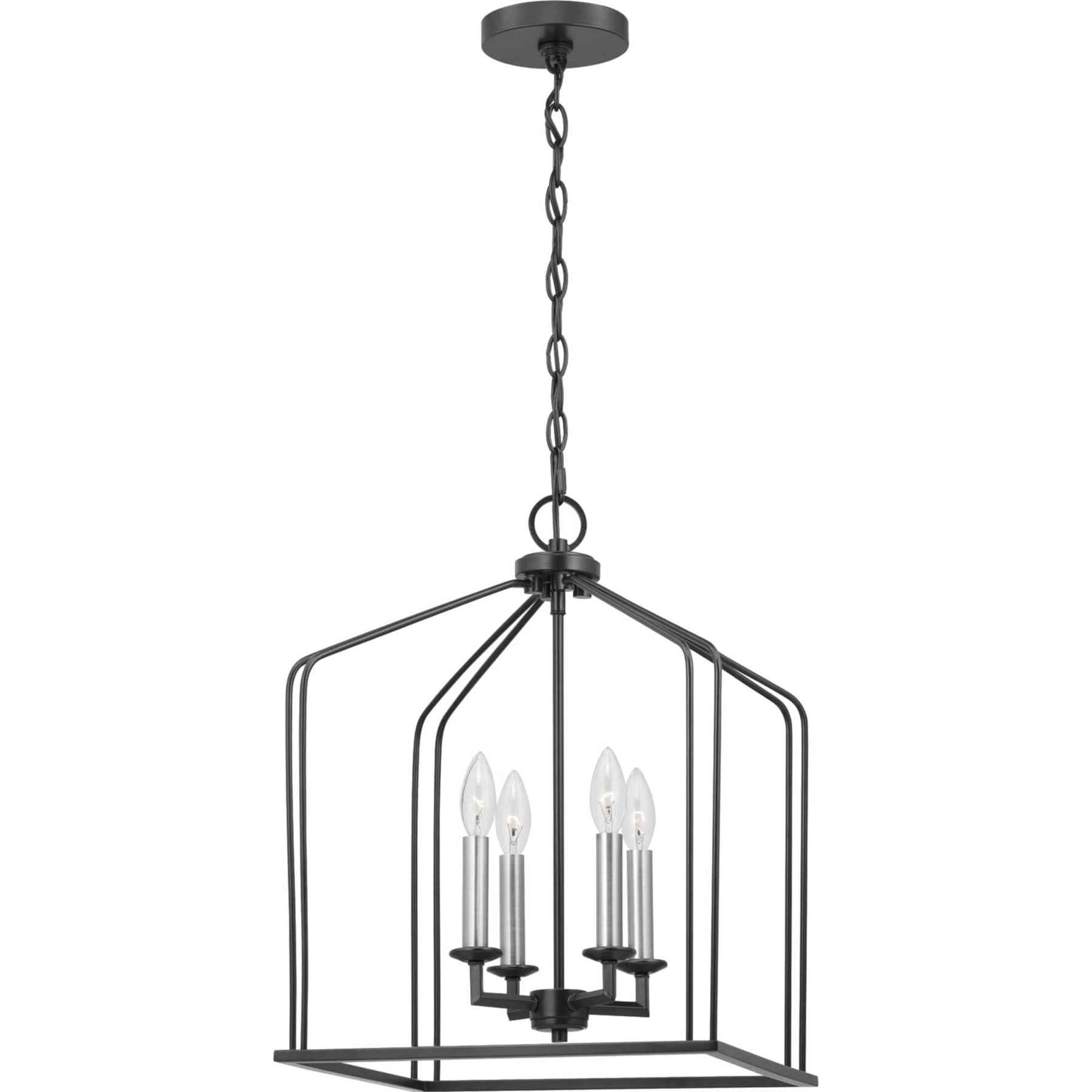 Progress Lighting Frisco 4-Light Black and Antique Nickel Farmhouse Lantern Medium Hanging Pendant Light