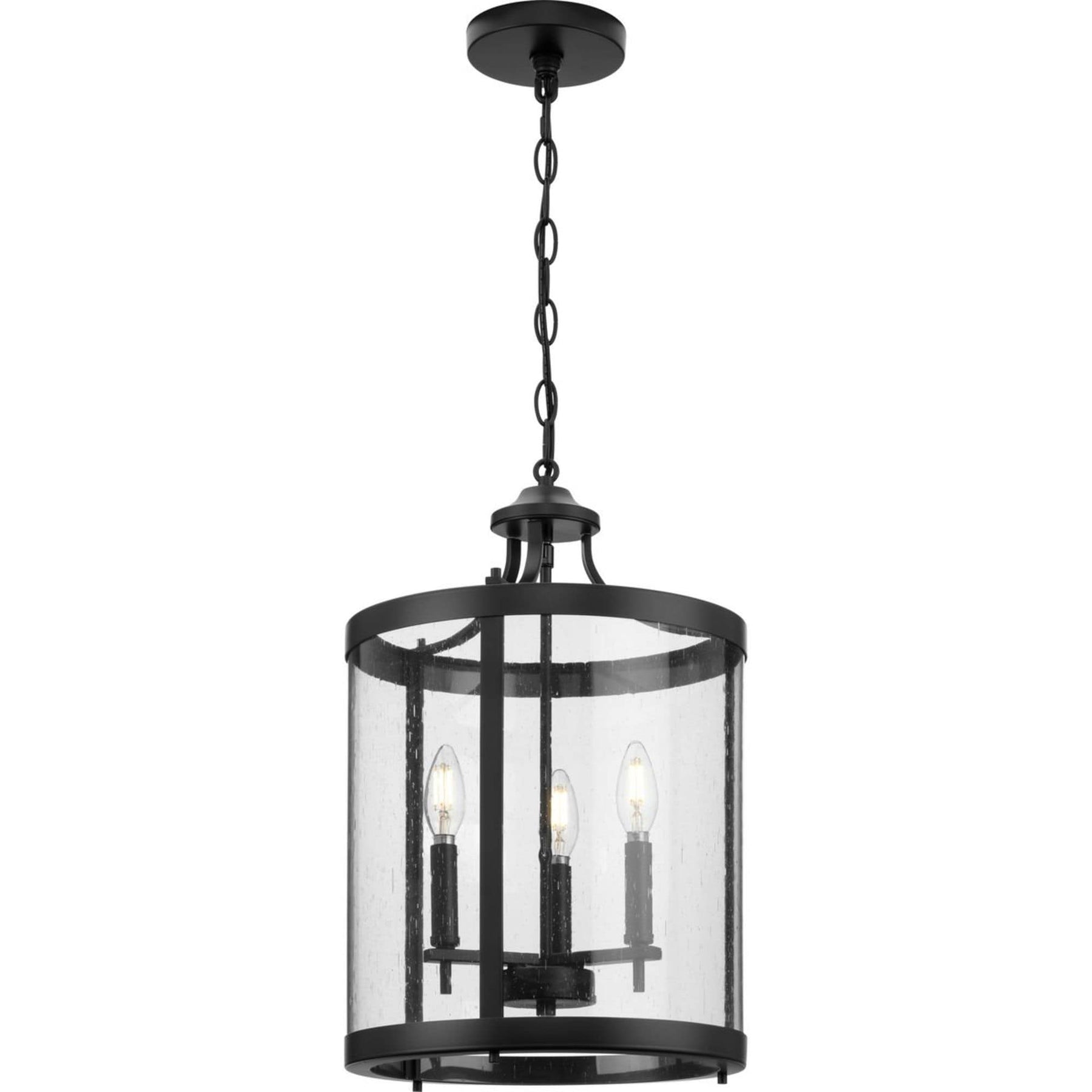 Progress Lighting Morehouse 3-Light Matte Black Transitional Seeded Glass Cylinder Medium Hanging Pendant Light