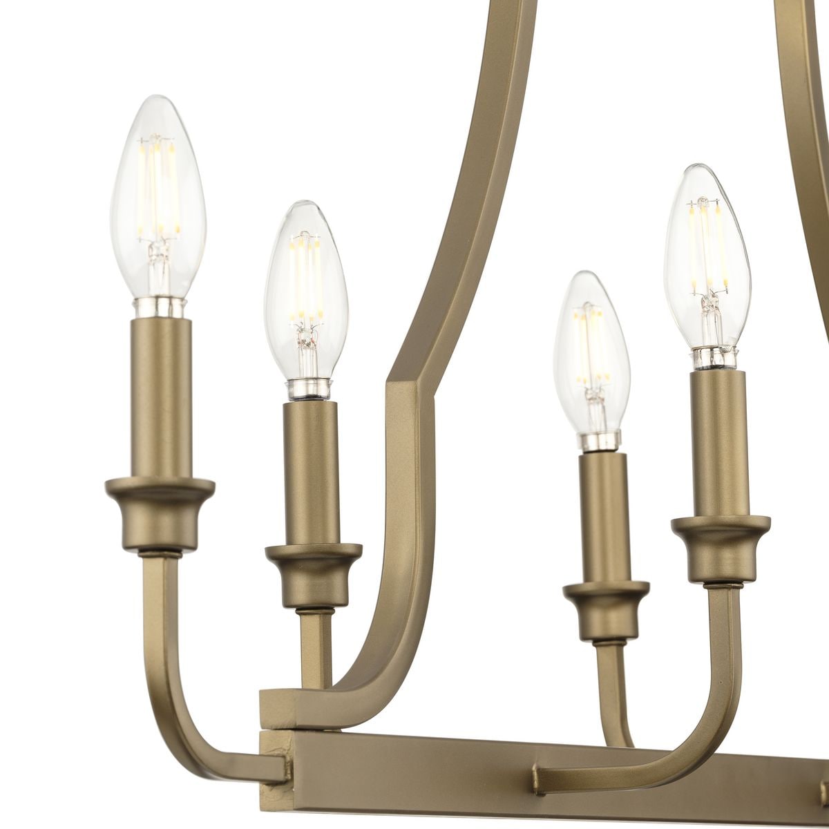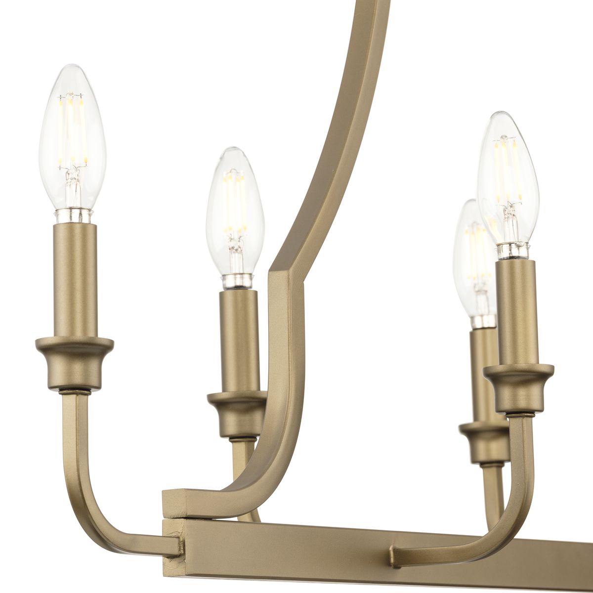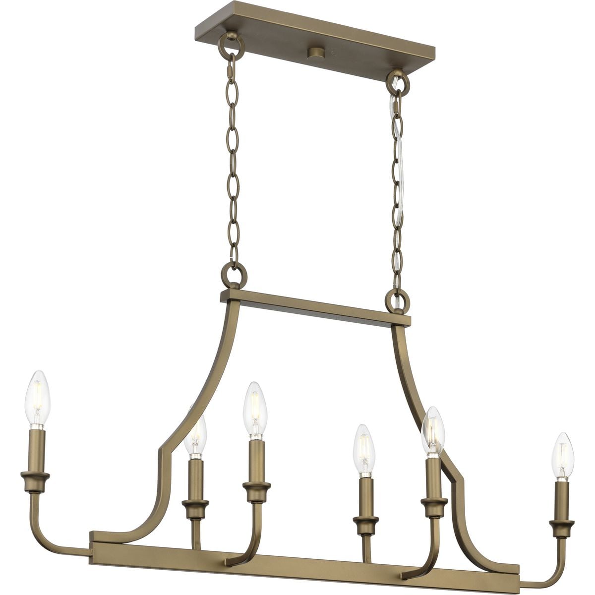 Illuminate your kitchen island or dining area with the Myerly 6-Light Linear Chandelier by Progress Lighting. Featuring a sleek, weathered brass finish and elegantly simple candlestick design, this fixture is perfect for modern and contemporary interiors. Experience exceptional quality and functionality with adjustable height options and dimmable lighting capabilities.
