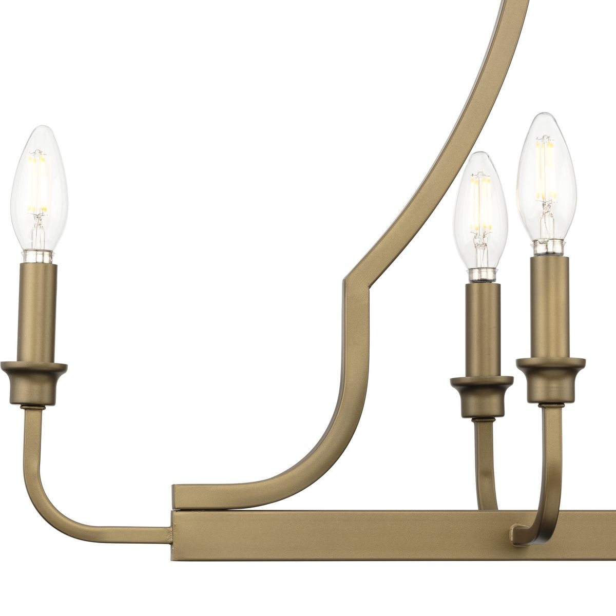 The Myerly 6-Light Chandelier weaves warmth and sophistication into any room. Its weathered brass finish evokes timeless elegance, while the linear candlestick design adds a graceful element atop kitchen islands or dining tables. This luxurious fixture shines as a centerpiece, casting a warm, welcoming glow that invites both intimacy and artistry. Undeniably exquisite, this chandelier transforms ordinary spaces into havens of modern allure.