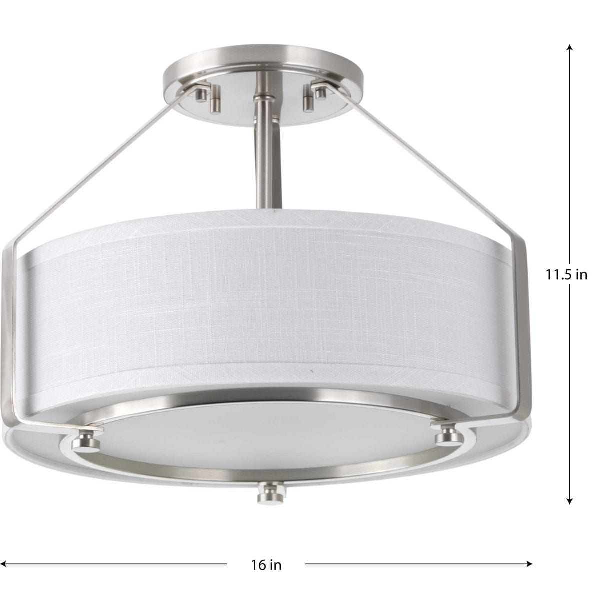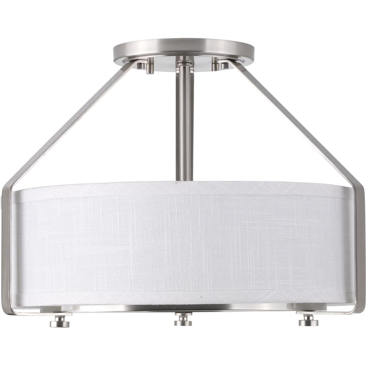 Progress Lighting Ratio 3-Light Brushed Nickel Transitional Drum Medium Hanging Convertible Pendant/semi-flush