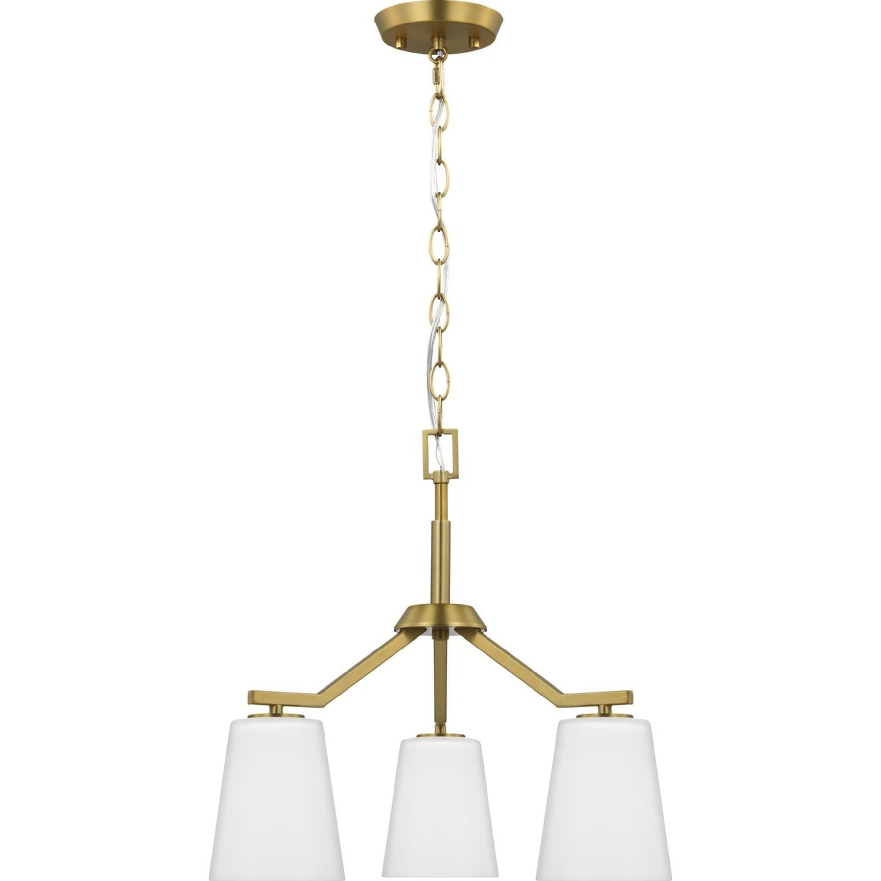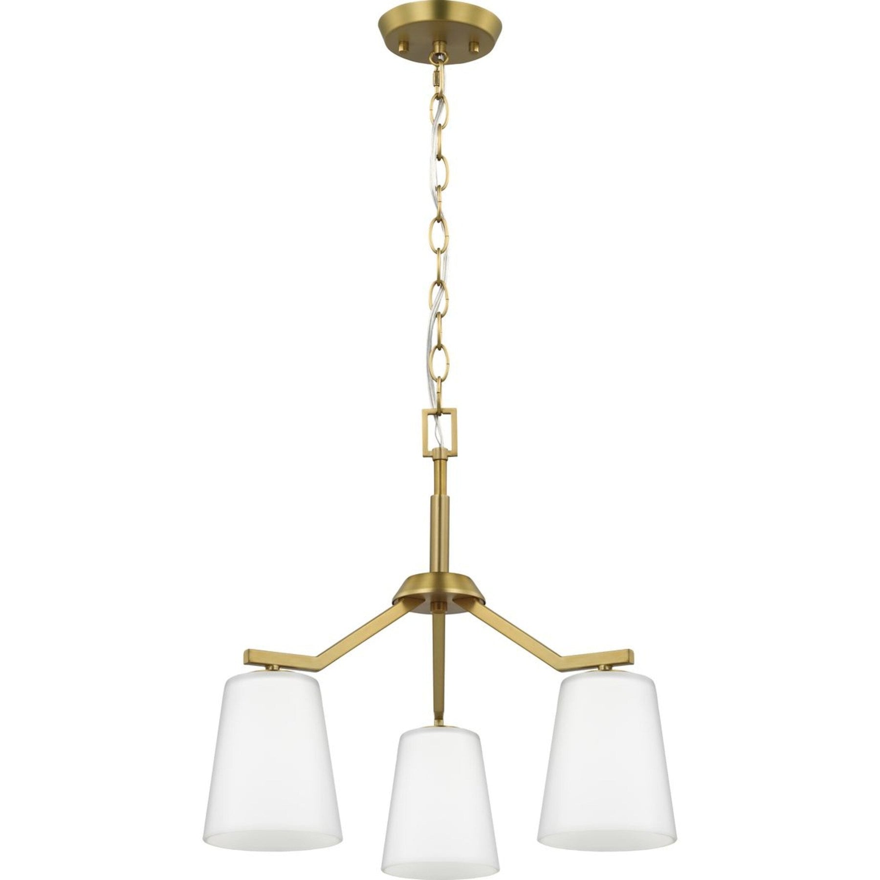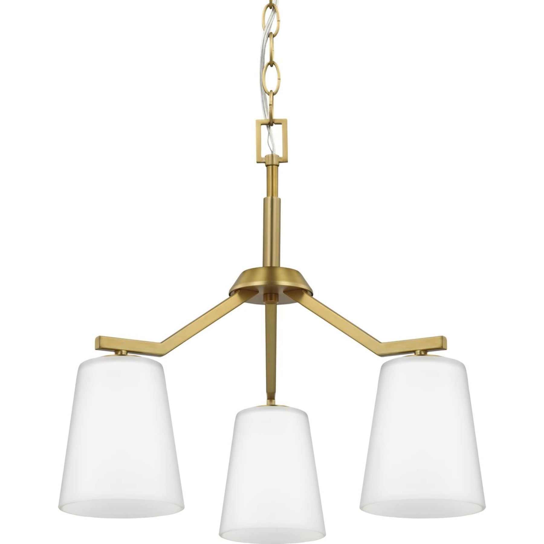 Illuminate your space with modern elegance using the Progress Lighting Vertex 3-Light Pendant. This versatile fixture combines a stunning brushed gold finish with etched white glass cones, providing outstanding ambient lighting for dining rooms, foyers, and living areas. Enjoy the flexibility of converting from a chandelier to a semi-flush mount to suit your design needs.