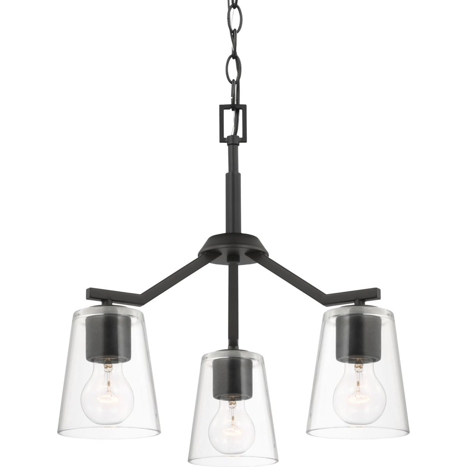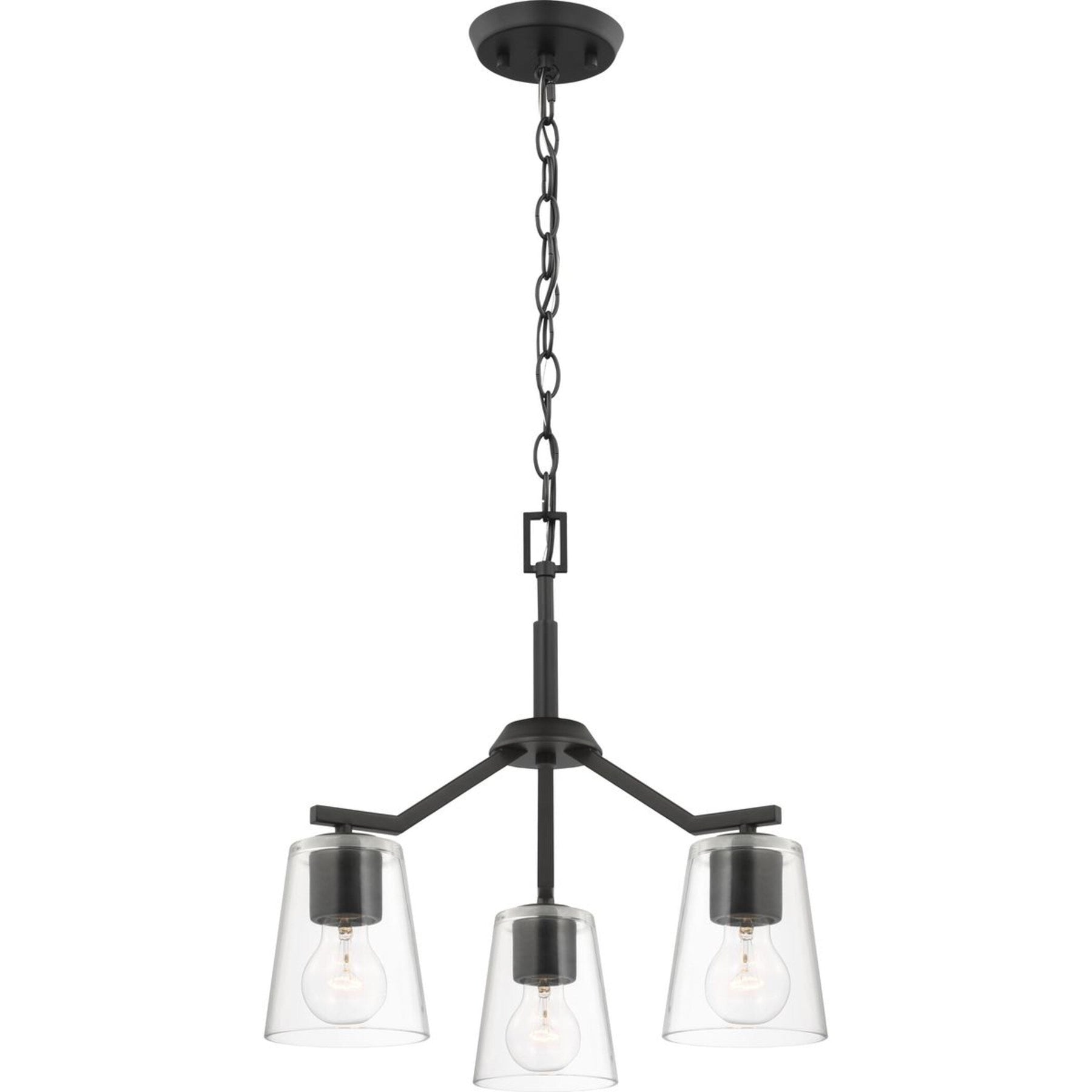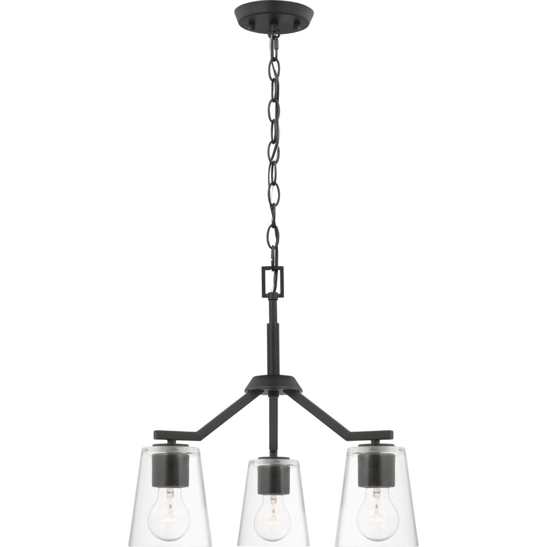 Progress Lighting Vertex 3-Light Matte Black Modern/Contemporary Clear Glass Cone Medium Hanging Pendant Light