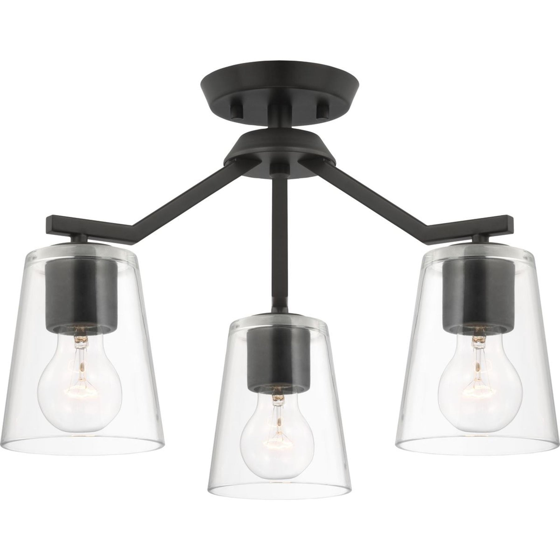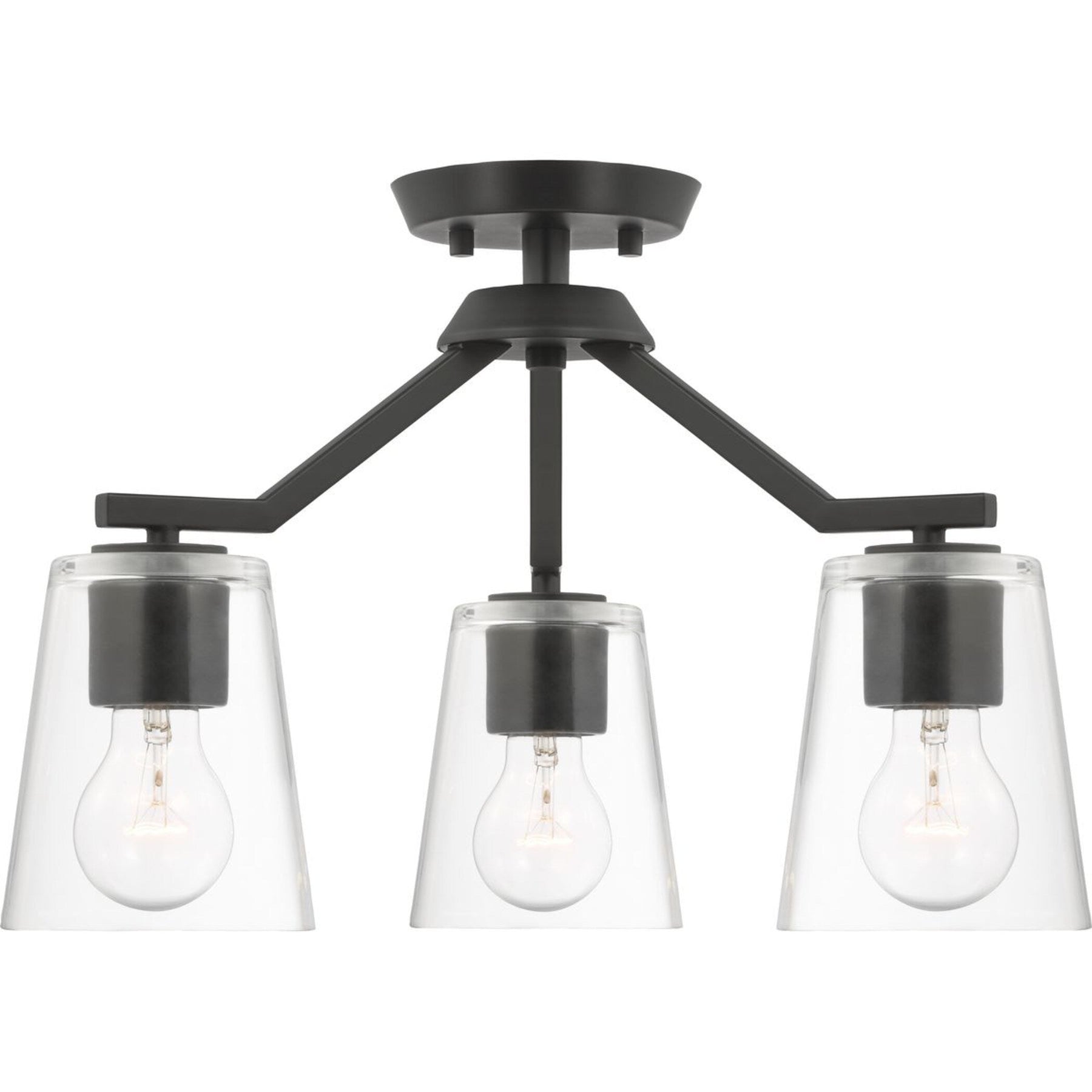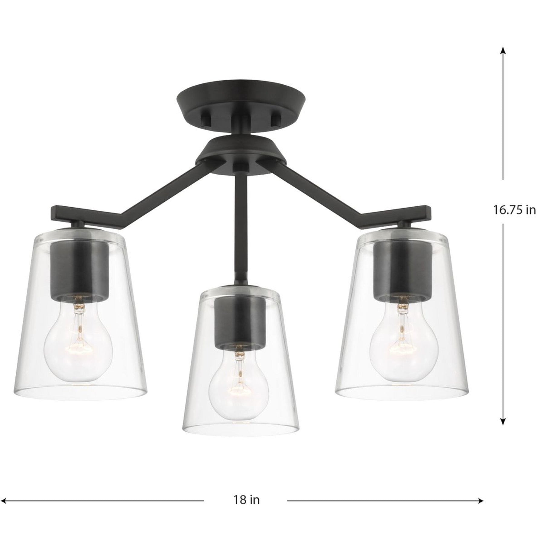 Progress Lighting Vertex 3-Light Matte Black Modern/Contemporary Clear Glass Cone Medium Hanging Pendant Light