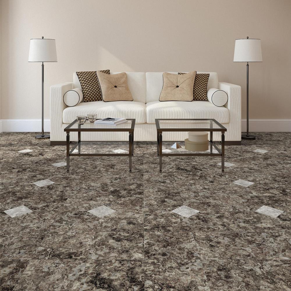 Stone-look interlocking LVT from Perfection Floor Tile’s Breccia Collection. These 20-in x 20-in, 5-mm thick tiles feature a satin finish and water-resistant, urethane wear layer for easy-care durability in busy homes or light commercial spaces.