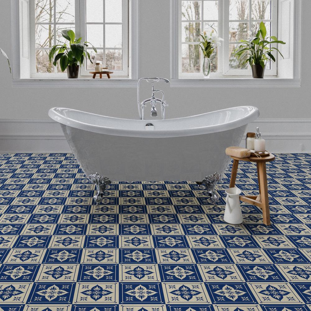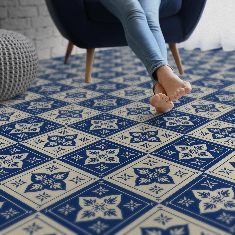 This bold Blue Lotus motif infuses a room with graphic rhythm and chic symmetry, transforming blank floors into a captivating canvas. The satin finish softens the navy-and-cream palette, creating a refined yet spirited foundation. Try pairing it with crisp white walls and burnished brass accents to let the pattern sing. It’s an effortless path to luxe living with everyday practicality.