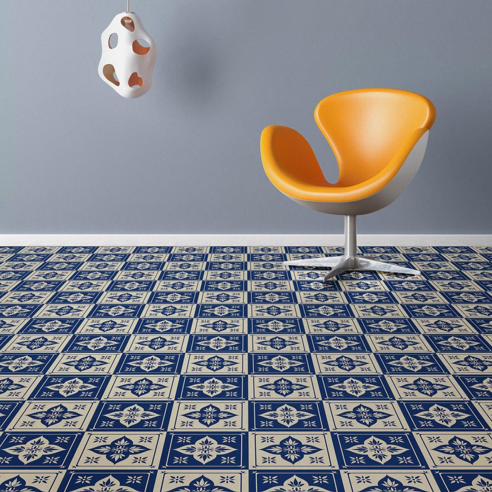 Patterned luxury vinyl tiles from Perfection Floor Tile’s Geo Collection feature a Blue Lotus/Satin finish with hidden interlocking edges for floating installation. The 20-in x 20-in, 5-mm thick tiles are water resistant and easy to maintain—ideal for kitchens, baths, mud rooms, and more.