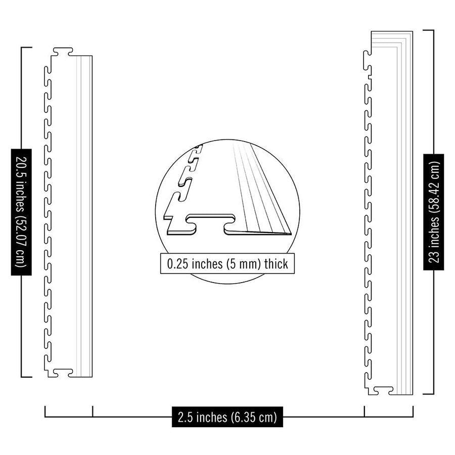 Durable interlocking edge ramps designed to finish Perfection Floor Tile installations with a clean, safe transition. Each 3 in x 20.5 in piece is 5 mm thick and compatible with Commercial, Coin, and Diamond Plate tiles.