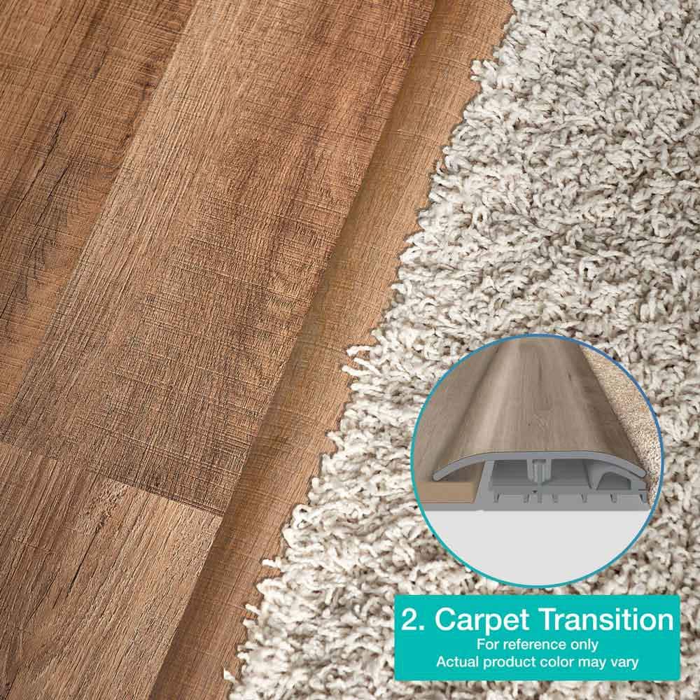 Complete vinyl plank installations with this multifunctional 4-in-1 molding kit. It assembles as a T-molding, carpet transition, hard surface reducer, or end molding to finish doorways and edges cleanly. Durable vinyl construction with waterproof, scratch- and stain-resistant performance.