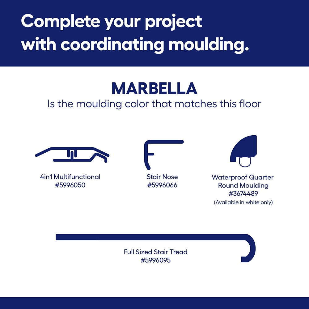 A: Yes, the Pergo Marbella Limestone Gray vinyl flooring features WetProtect® technology, making it perfect for use in areas like kitchens, bathrooms, laundry rooms, and mudrooms.